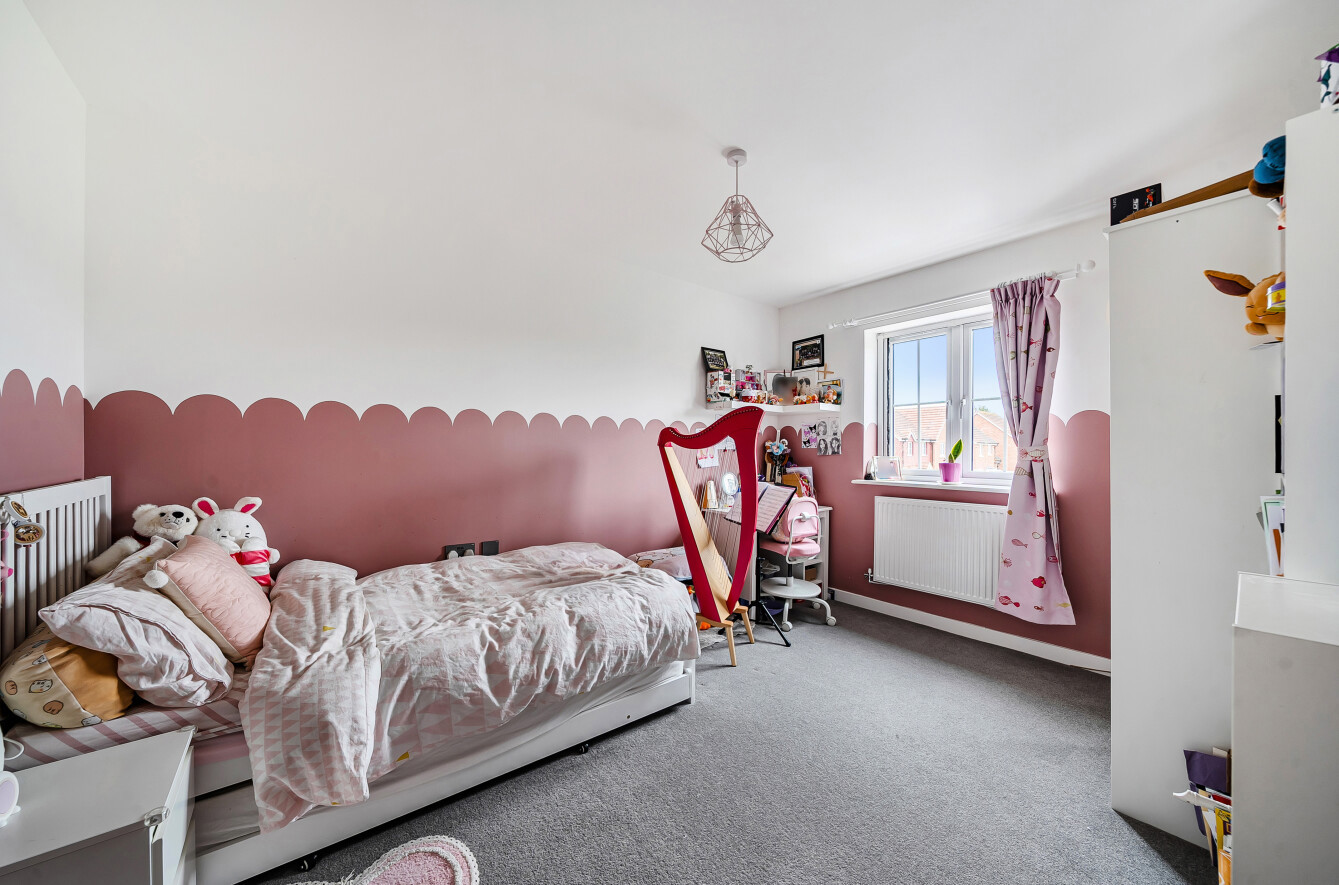 The second floor provides further excellent accommodation, featuring an additional principal bedroom with its own en-suite shower room. This level also includes a further single bedroom, ideal as a home office, study or playroom, as well as a useful storage room, enhancing the overall flexibility of the home.