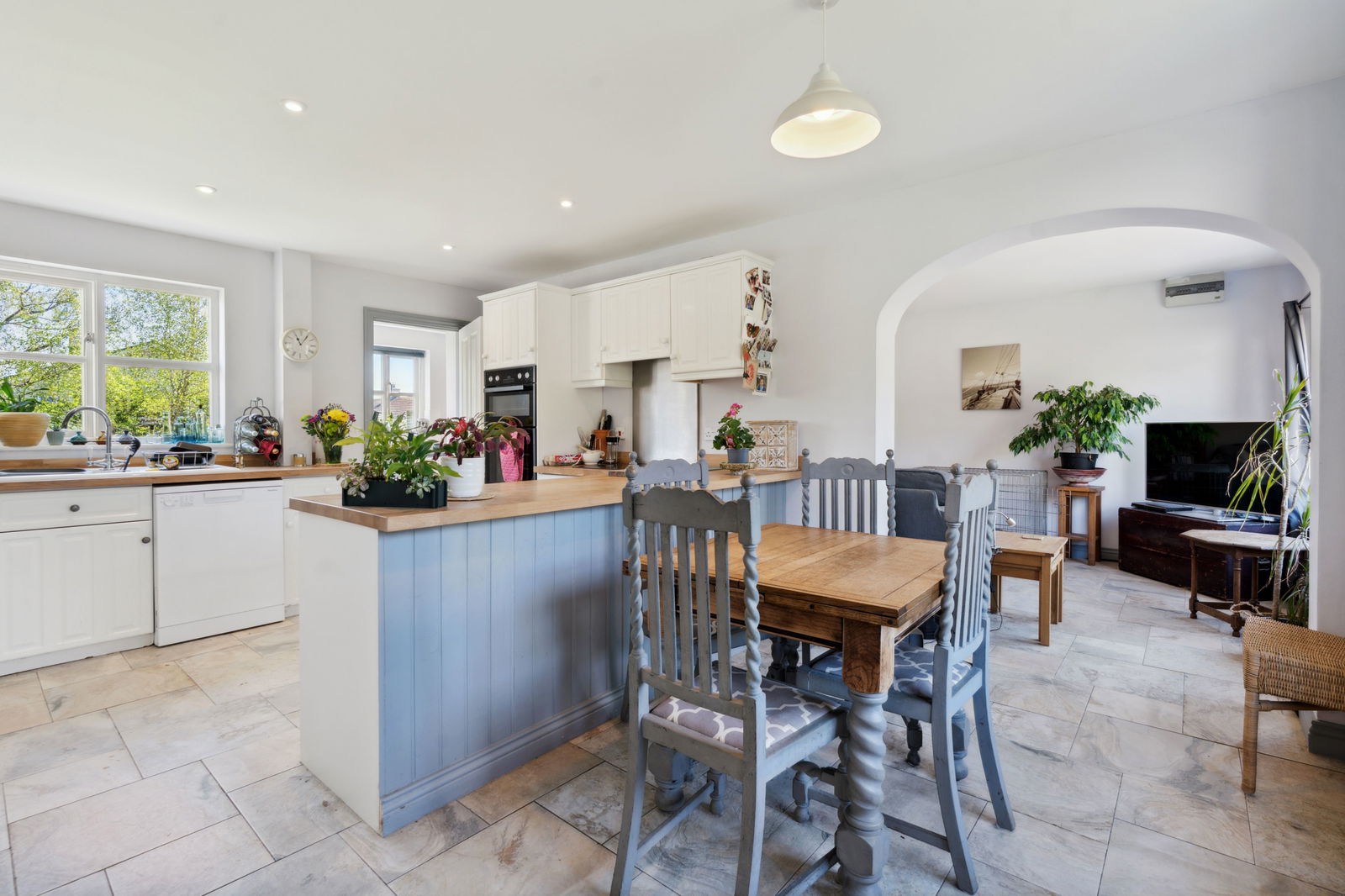 The front door leads into a hallway with staircase and doors off to the kitchen dining room and separate sitting room. The sitting room is a large twin aspect room with patio doors out to the large rear garden. The kitchen / dining room is also dual aspect and has a large archway leading into the family room/snug. The kitchen has a double oven and hob and space for dishwasher/fridge and freezer. In the utility there is space and plumbing for washing machine and tumble dryer. Off the utility is cloakroom with WC and handbasin and adjacent is a shower room. The whole of the ground floor has been tiled except the sitting room which has carpets.