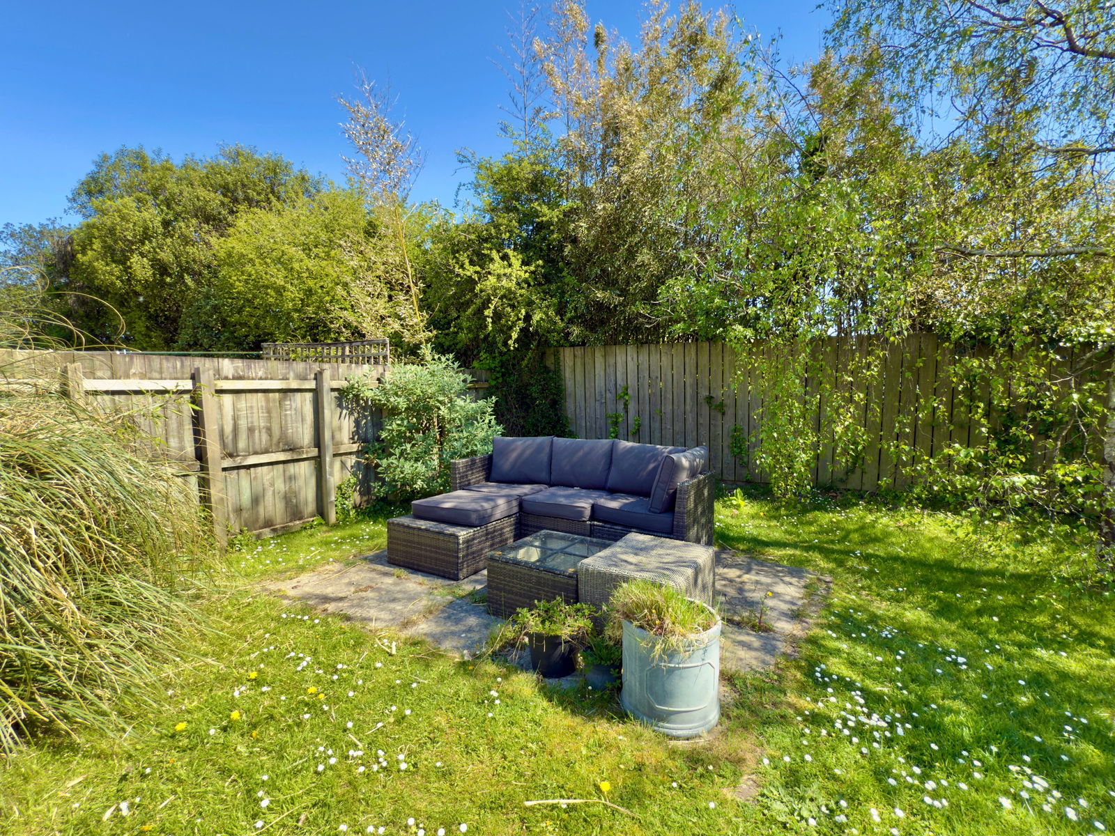 The property has quite a large walled front garden with mature Cornish Palms and a tree fern. There is parking on the brick paved driveway and street parking in front of the property. This has a sunny west facing aspect.
