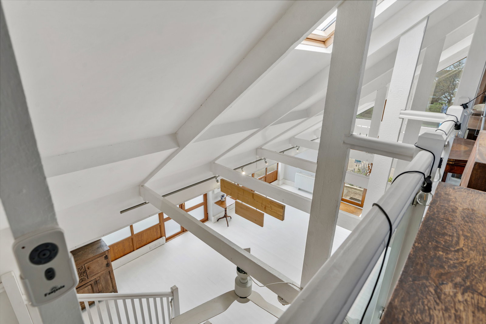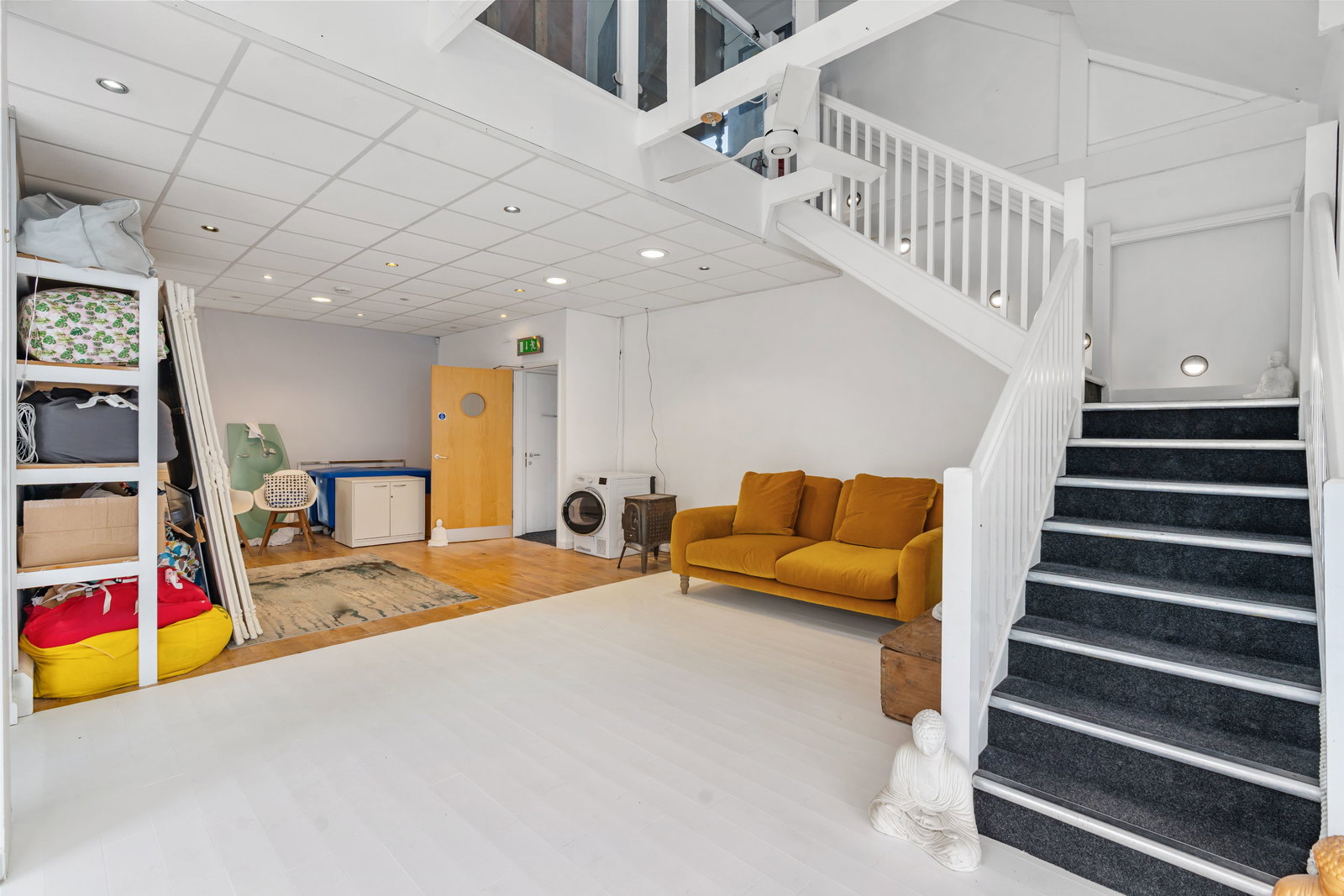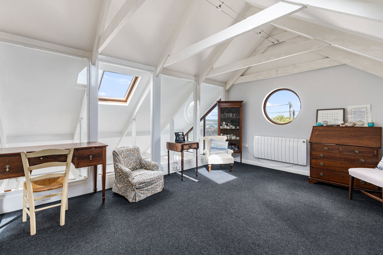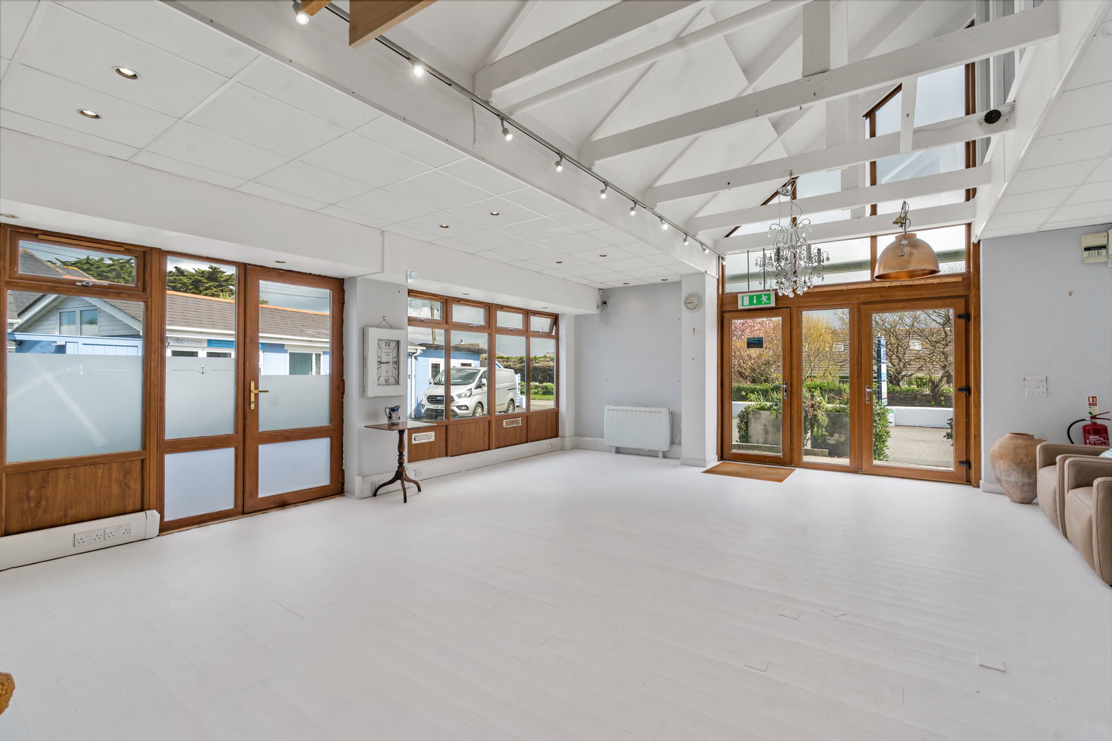 The building is very bright with lots of natural light from the South facing front full height glazed windows as well as a large side full height window to the ground floor. There are currently temporary partition walls to the ground floor which can easily be removed to create one large 100m2 space. There are four Velux windows plus a port hole window on the 2nd floor which is a mezzanine design with glazing to the dividing wall so again is very light with a feeling of space. There are great views from the port hole window across the Point Golf Course and up to St Minver church.