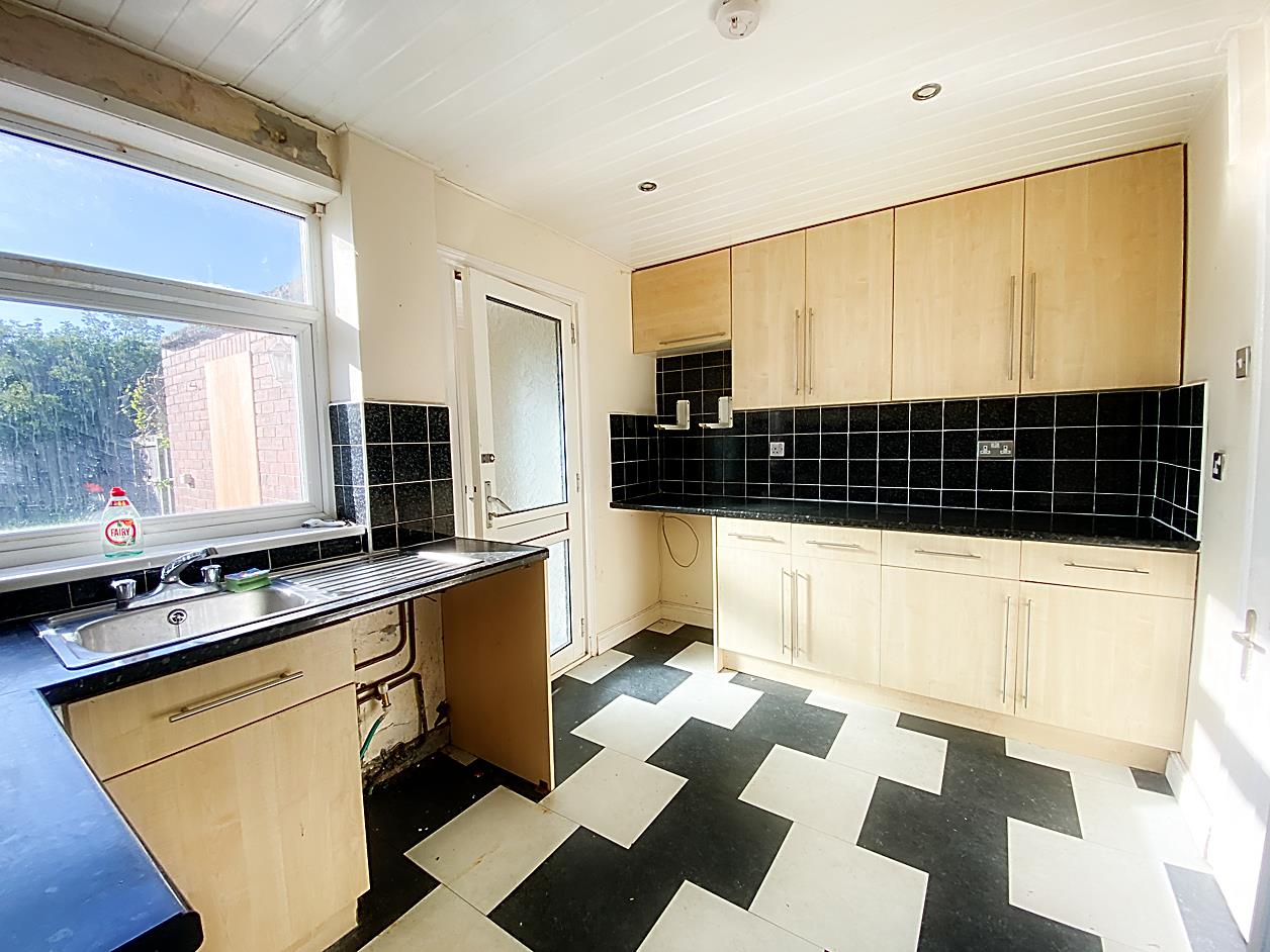 Kitchen - 3.55 x 2.52 (11'7" x 8'3") - Wall and base units with work surfaces over and sink unit. Double glazed window, cupboards, double glazed door leading to the rear.