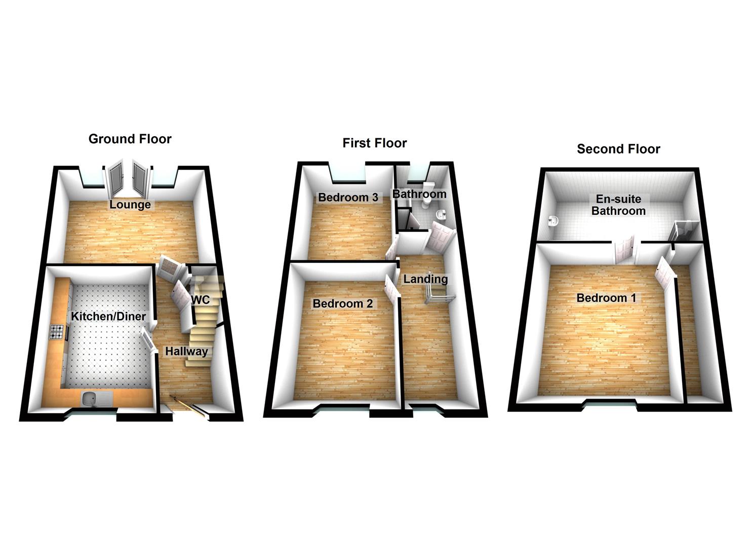 ** DECEPTIVLEY SPACIOUS END TERRRACE TOWN HOUSE WITH THREE DOUBLE BEDROOMS **