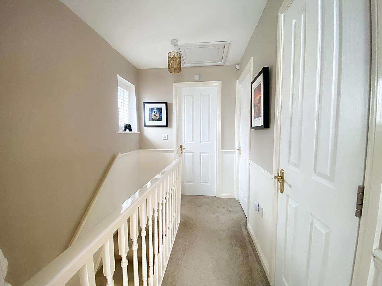Hallway - Double glazed entrance door, laminate flooring, stairs to the first floor landing, radiator.