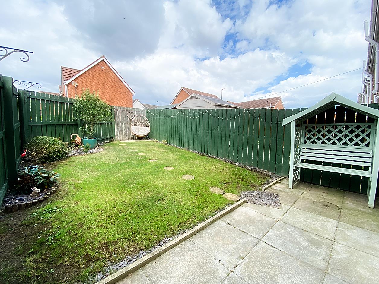 External - Externally there is a garden to the front which is laid to lawn together with planted bds. The rear garden has lawn and a paved patio area, there is also a gate leading to the garage and parking.