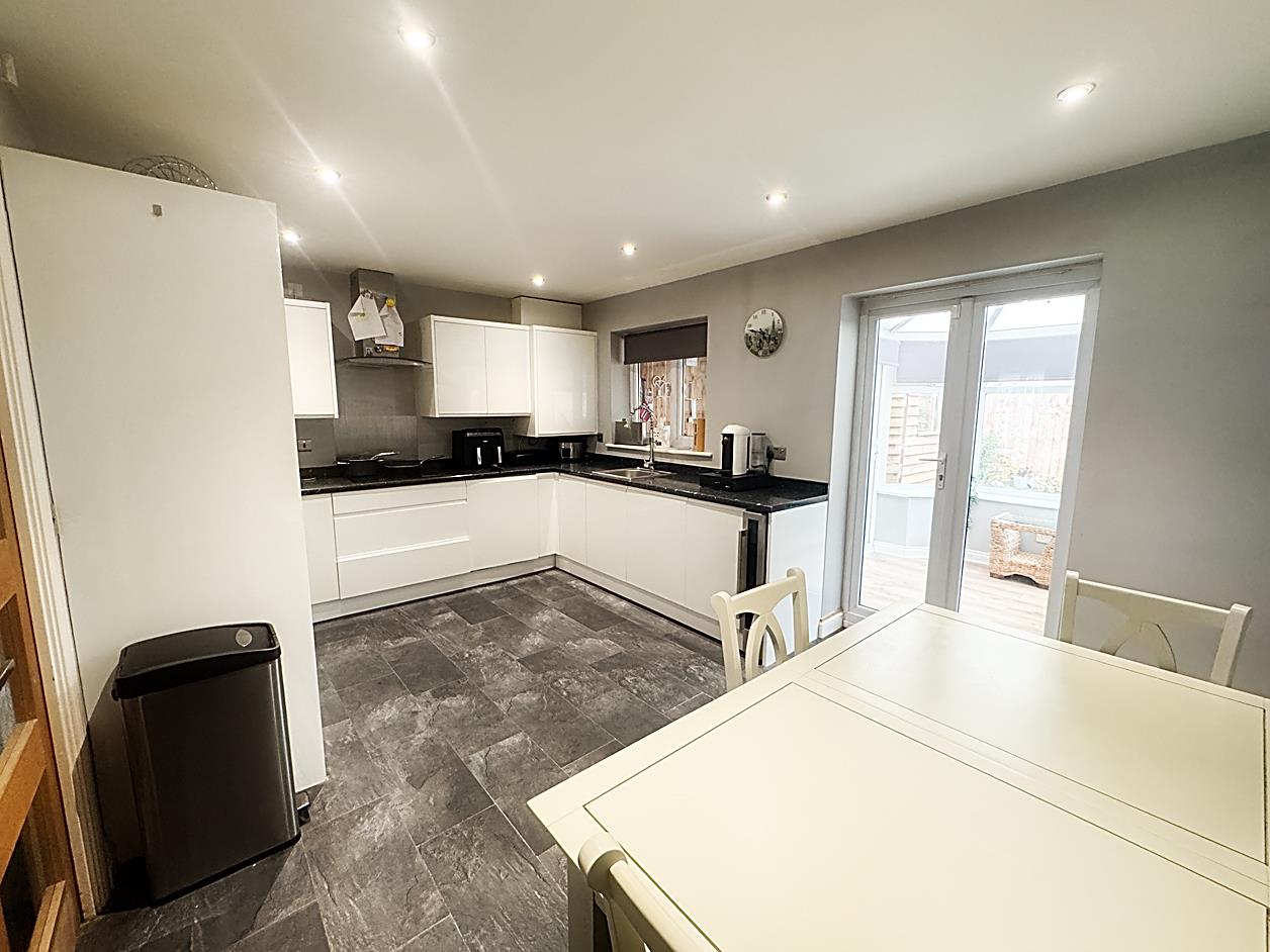 Kitchen/Diner - 4.76 x 3.23 (15'7" x 10'7") - Fitted with range of wall and base units with complimentary worktops, sink, built in oven and induction hob and extractor hood, integrated fridge freezer, dishwasher, washing machine and wine cooler, understairs cupboard and access to conservatory.