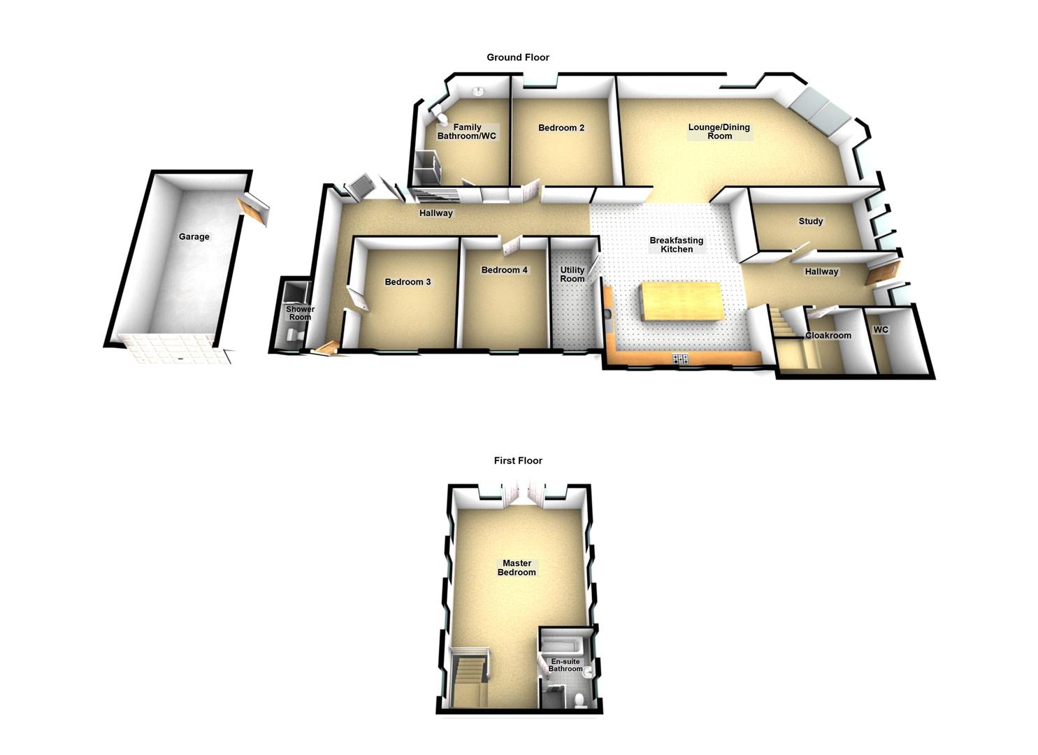 The Cottage development comprises; Lounge/Dining/Room, Breakfasting Kitchen, Utility Room, Study, Cloakroom, Separate Downstairs Toilet, Master Bedroom with En-Suite Bathroom, three spacious Double Bedrooms, two of which have access to boarded loft spaces, a Family Bathroom/WC, Shower Room/WC.