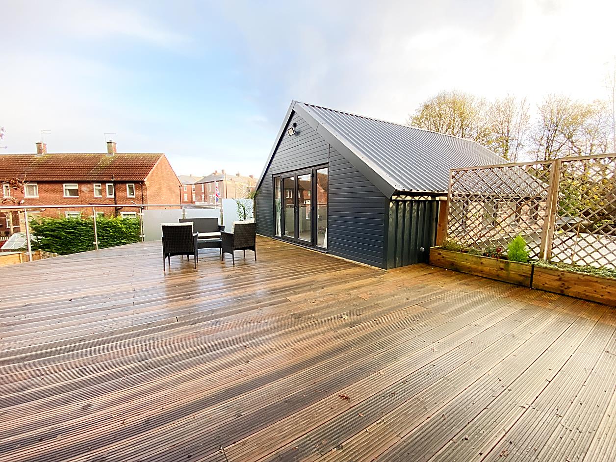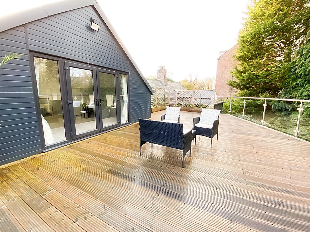 Externally there is a Detached Garage, parking for three vehicles and extensive decked areas around the property, with three separate areas for family entertainment and a summerhouse. There is also a decked roof garden with glass balustrades and excellent views over the Dene.