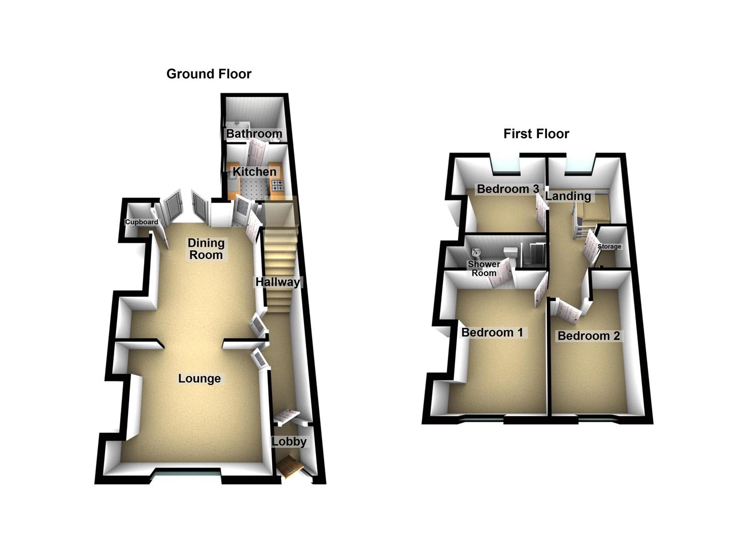 Bedroom 3 - 2.97m plus recess x 1.91m - Double glazed window, radiator.