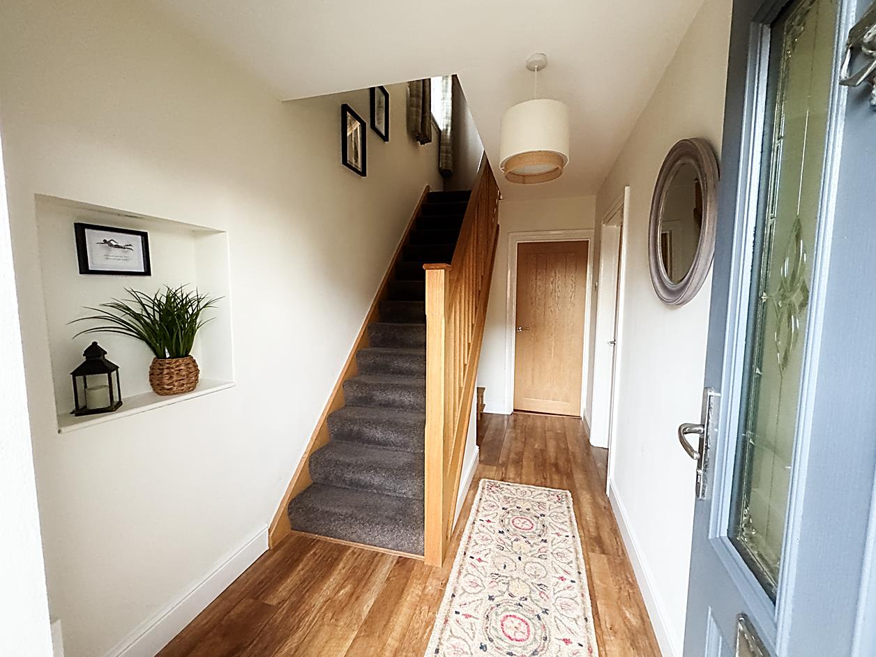 Hallway - Double glazed composite entrance door, stairs to the first floor landing with storage cupboard under, laminate flooring, radiator.