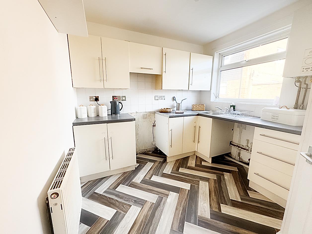 Kitchen - 2.69m x 2.69m - Double glazed window, a range of fitted wall and floor units with work surfaces over, sink unit, plumbed for washing machine, radiator.