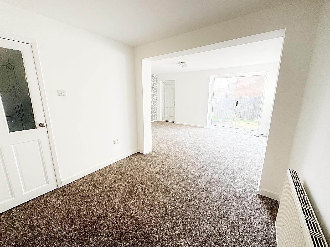 Living Room - 4.85m x 3.18m - Double glazed patio doors leading to rear garden, radiator, upvc door leading to utility/storage area, open plan to dining room