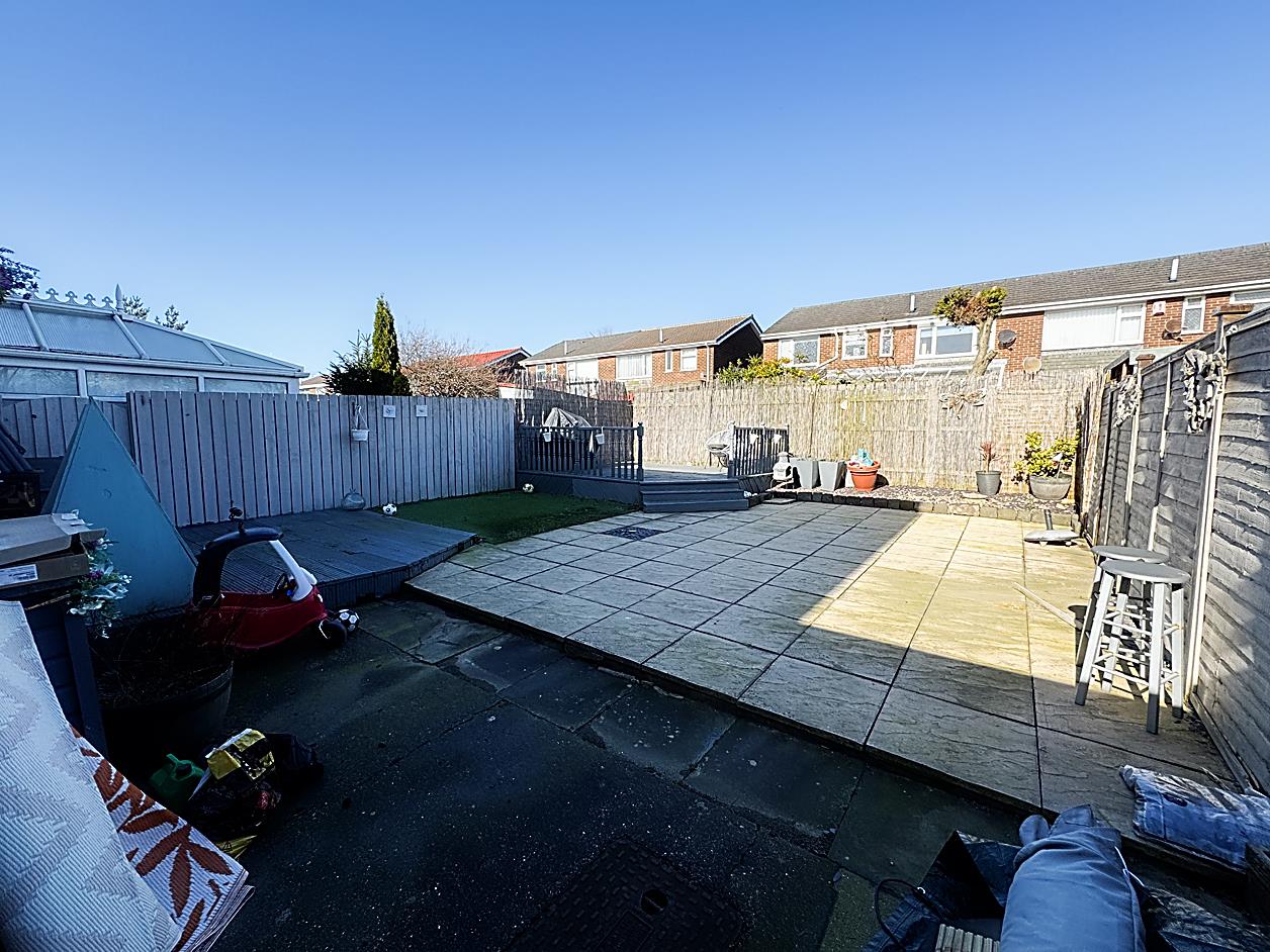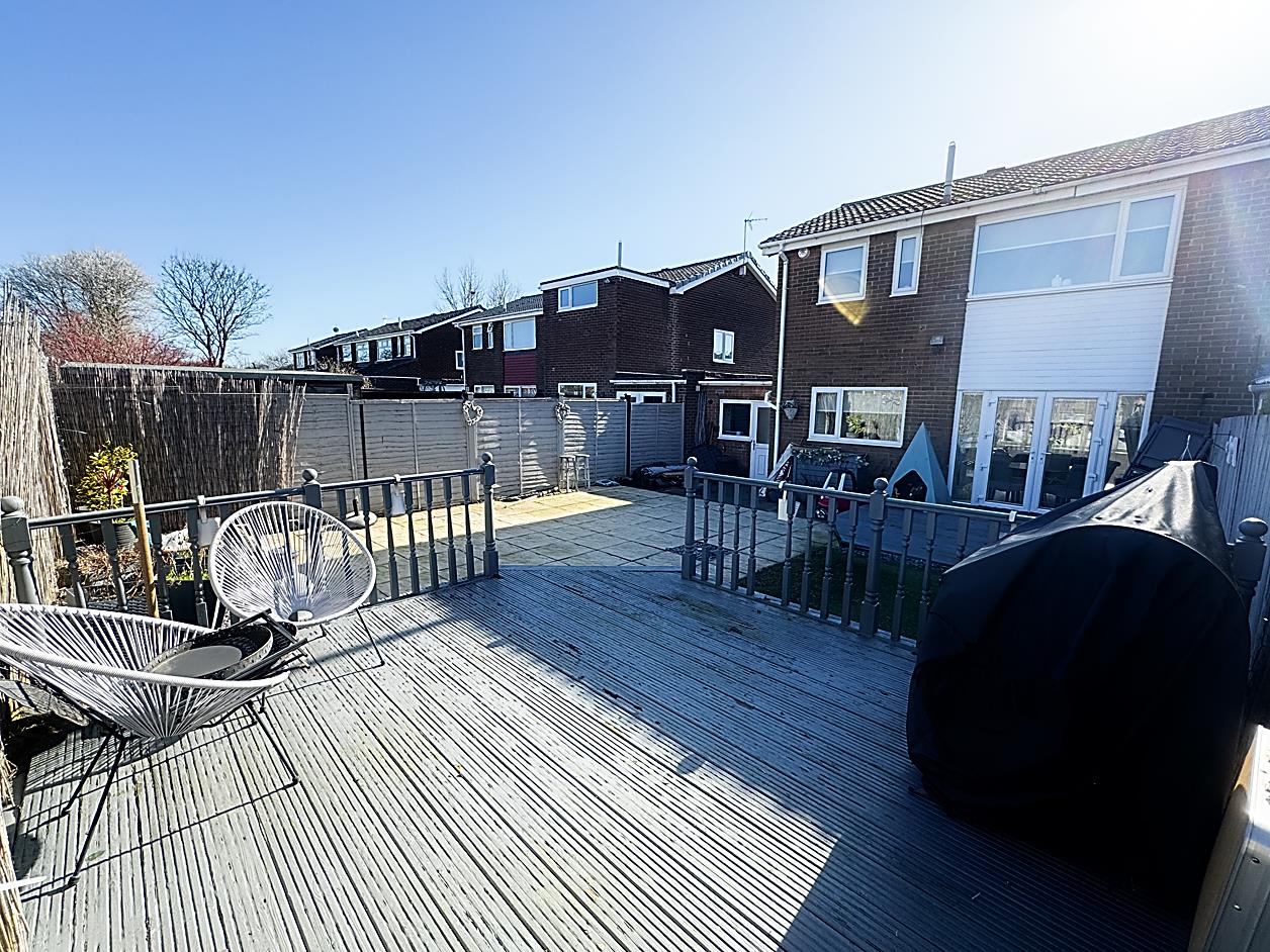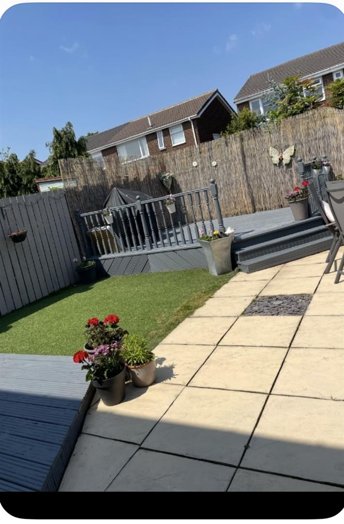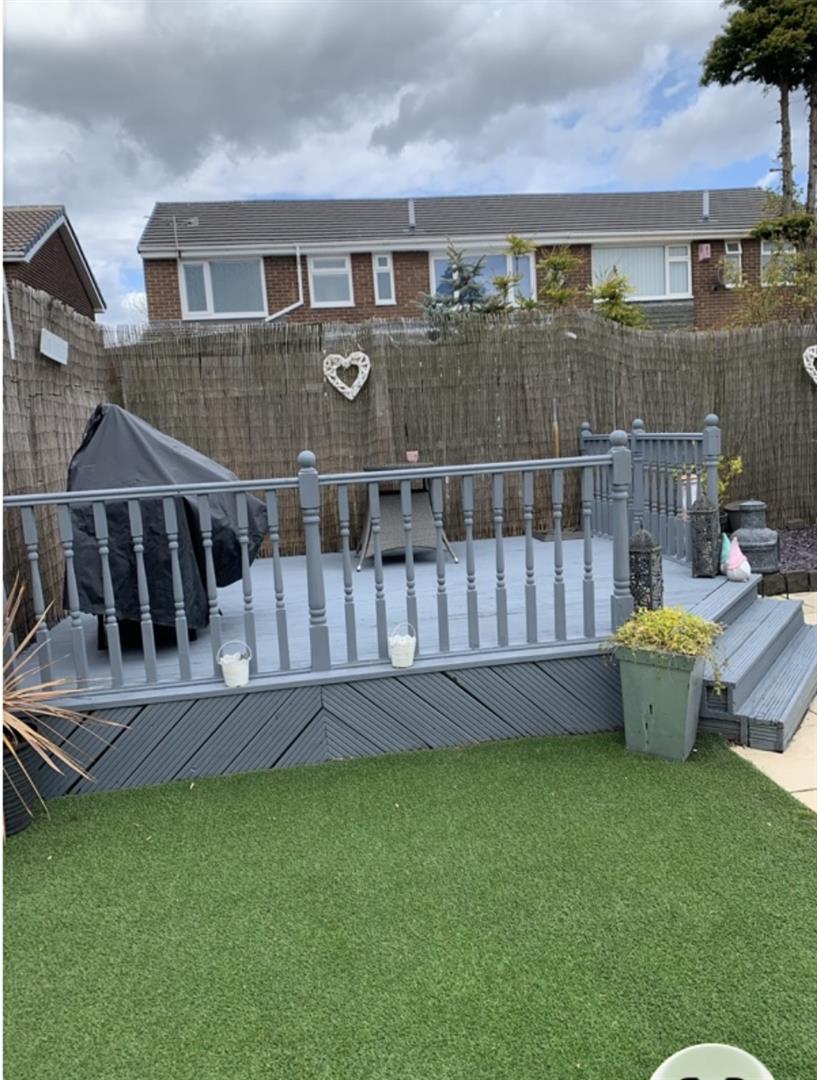 External - To to the front of the property there is driveway parking and lawned garden. The to there are two decked areas, a patio and artificial turf.