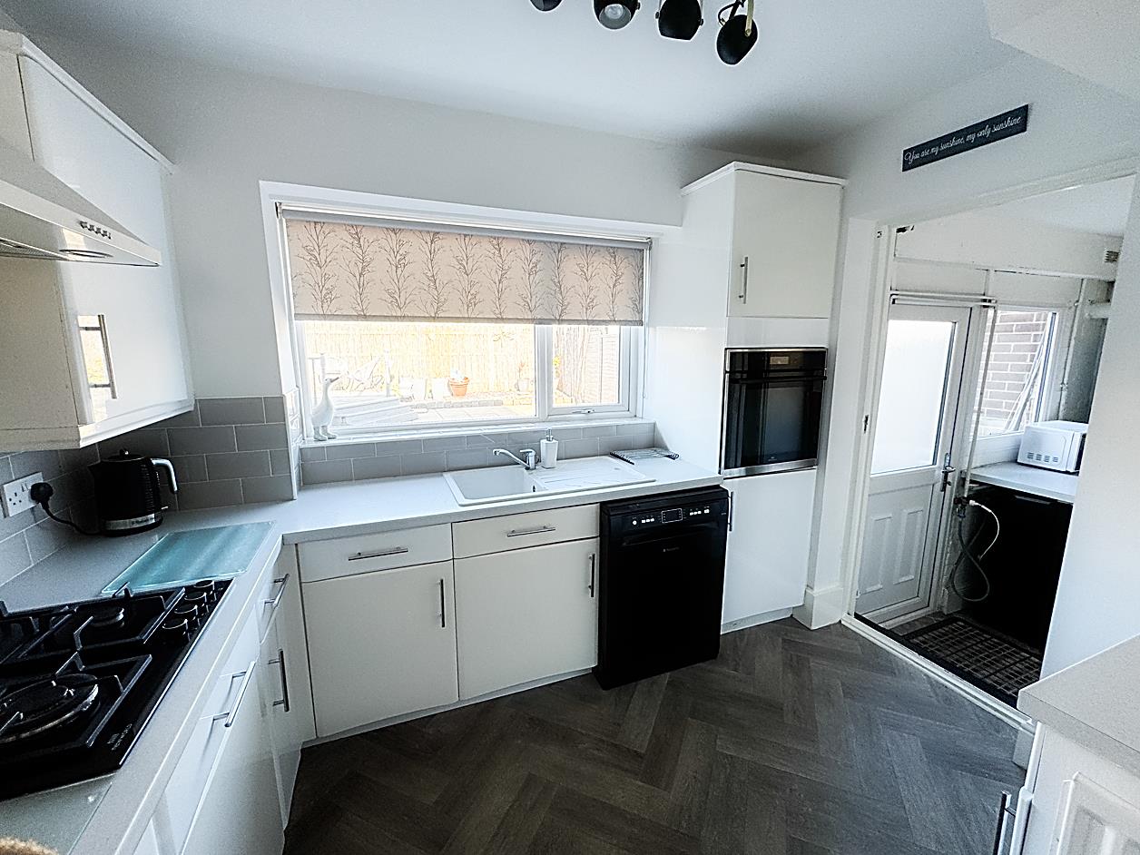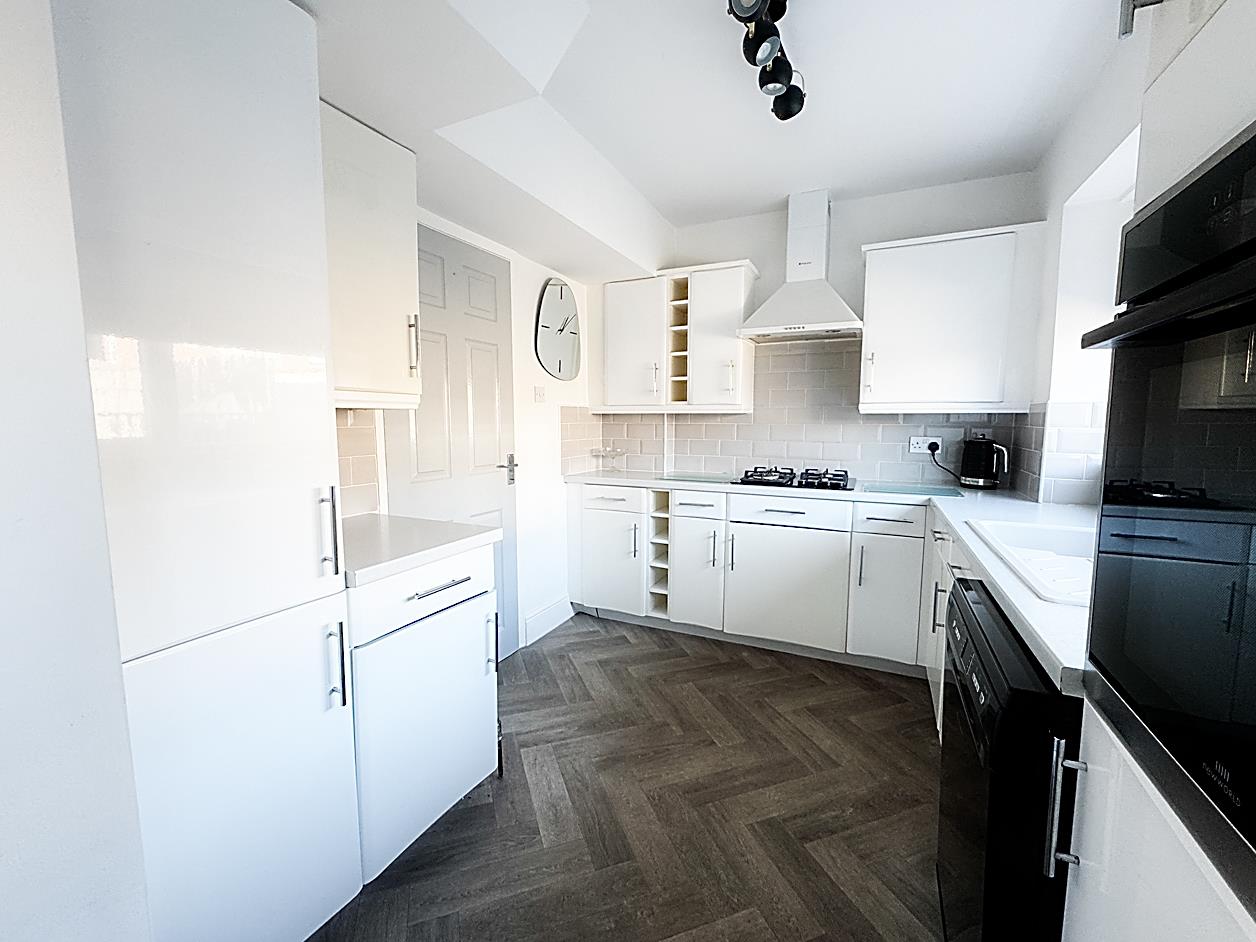 Kitchen - 2.95 x 2.47 (9'8" x 8'1" ) - Fitted with range of wall and floor units with complimentary worktops, part tiled walls, sink. gas hob with overhead extractor, built in oven, double glazed window overlooking rear garden and access to utility room.