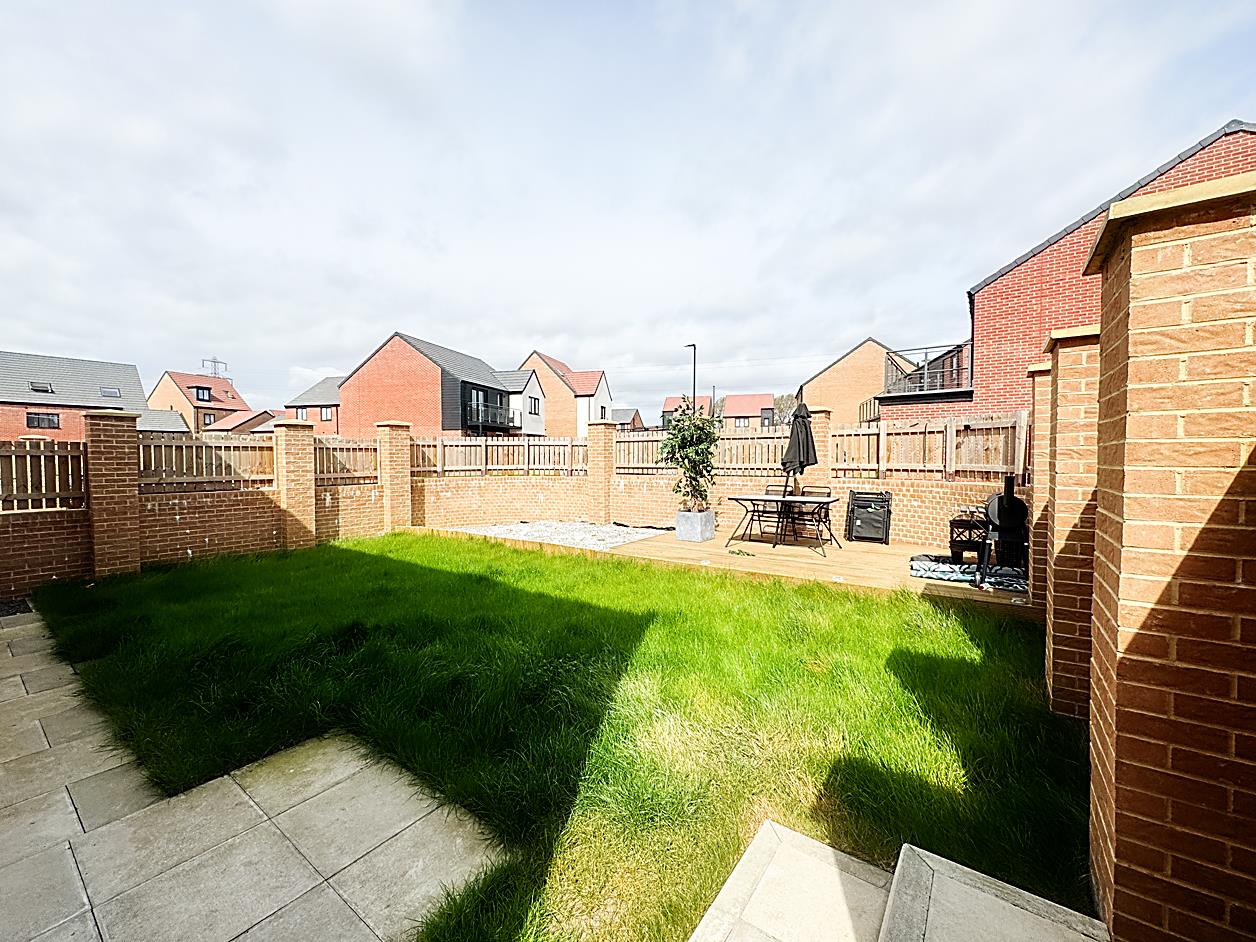 External - There is a garden to the front which is laid to lawn and a rear garden which has lawn, a decked area, gravelled area and a rear access gate leading to the garage. Property fronts on to a pedestrianised walkway.