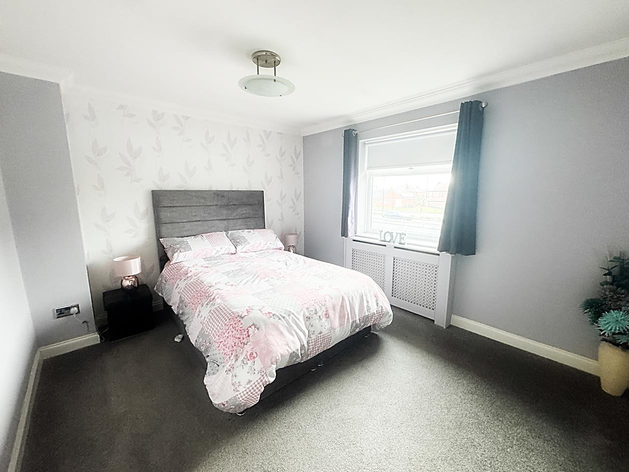 Bedroom 2 - 3.14 max x 3.48 (10'3" max x 11'5" ) - Double glazed window, radiator, fitted wardrobes, loft access. Front elevation