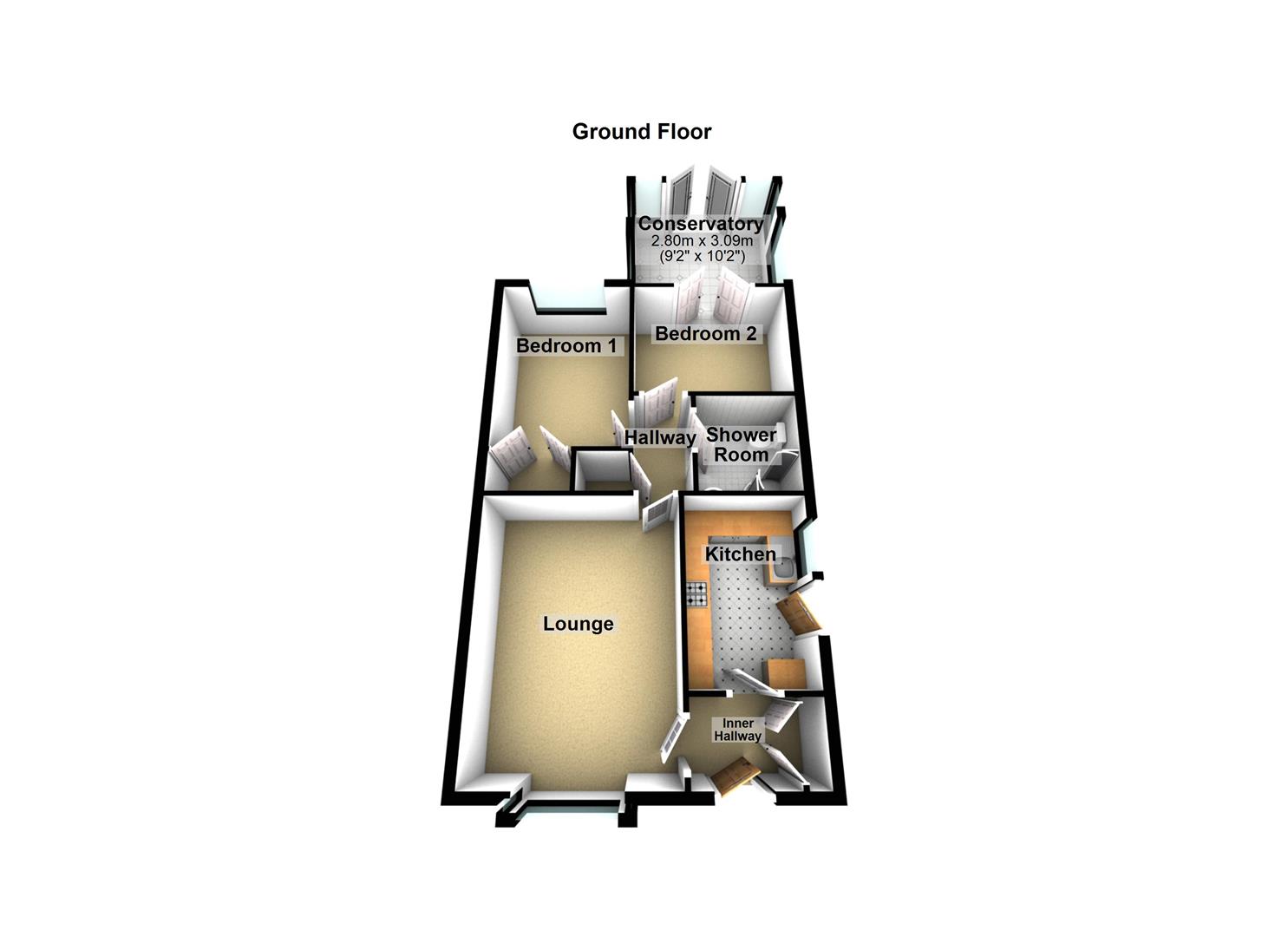 Conservatory - 3.09 x 2.78 (10'1" x 9'1") - Double glazed windows, French doors opening into rear garden.