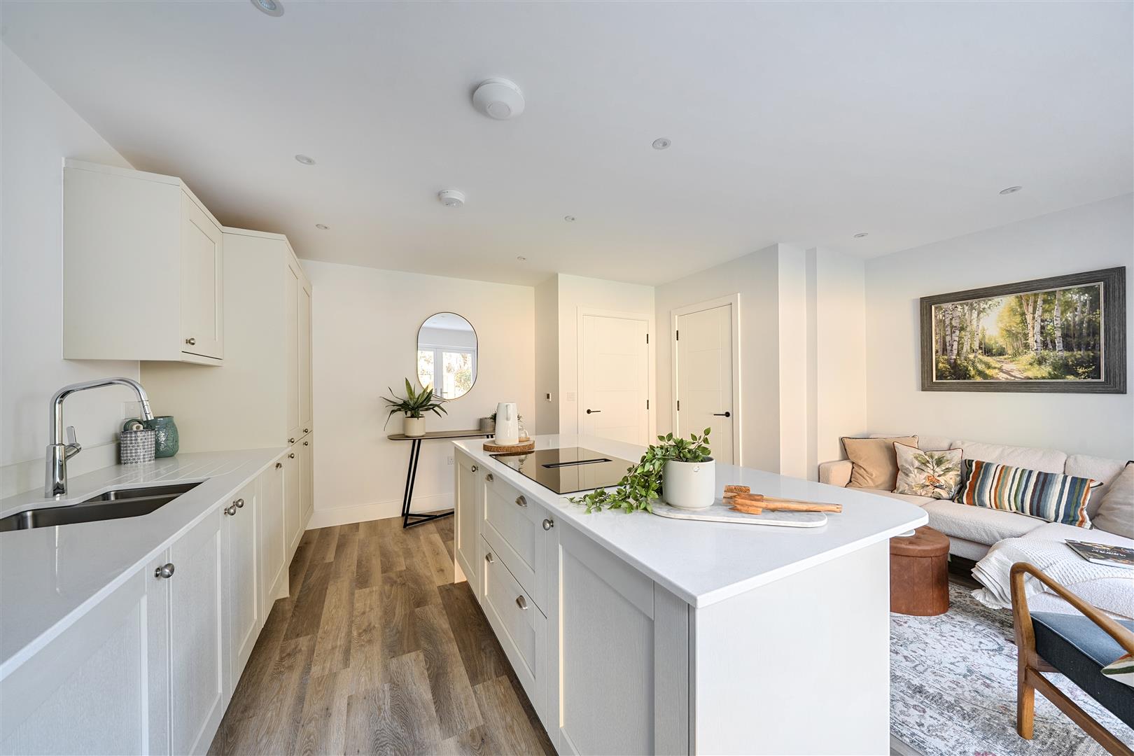 This energy-efficient home includes triple glazed windows, an air source heat pump, underfloor heating to the ground floor, Karndean flooring, and Porcelanosa tiling throughout. Outside, enjoy a westerly facing garden garage with power and lighting, and peace of mind with a 10-year build warranty.