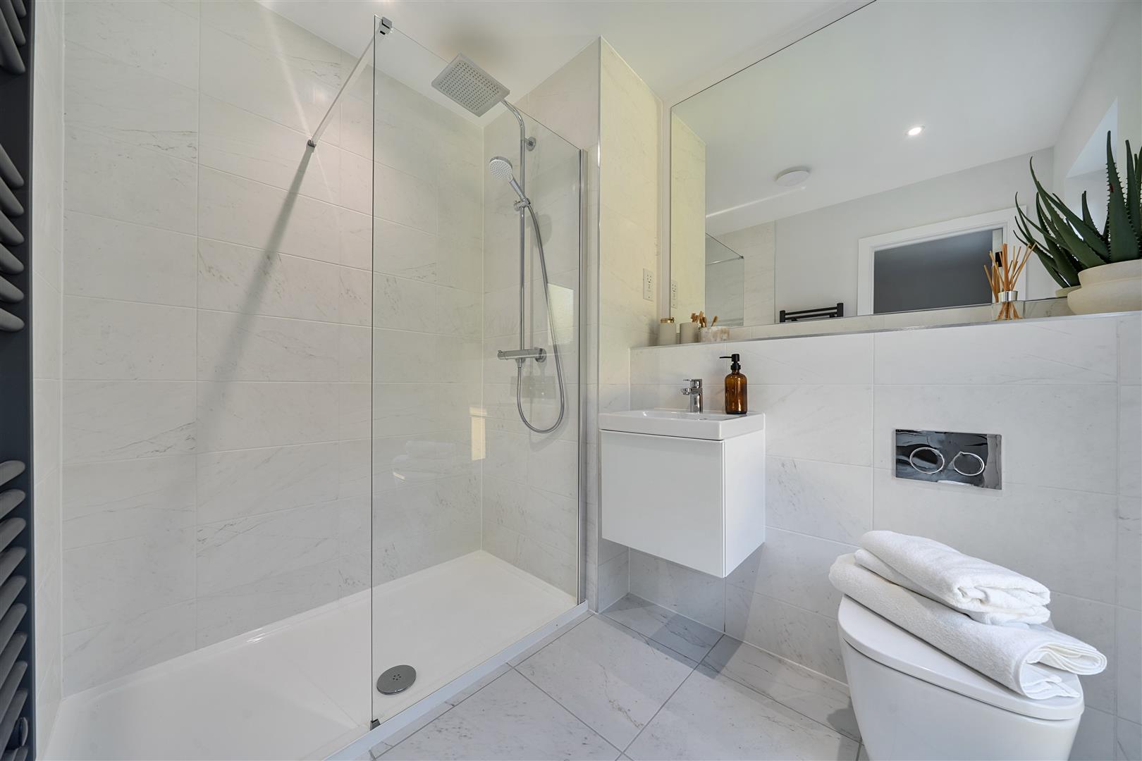 The first floor consists a large light triple aspect open plan kitchen / living / dining room with 2 Juliette balconies. The kitchen features Quartz worktops and integrated appliances.