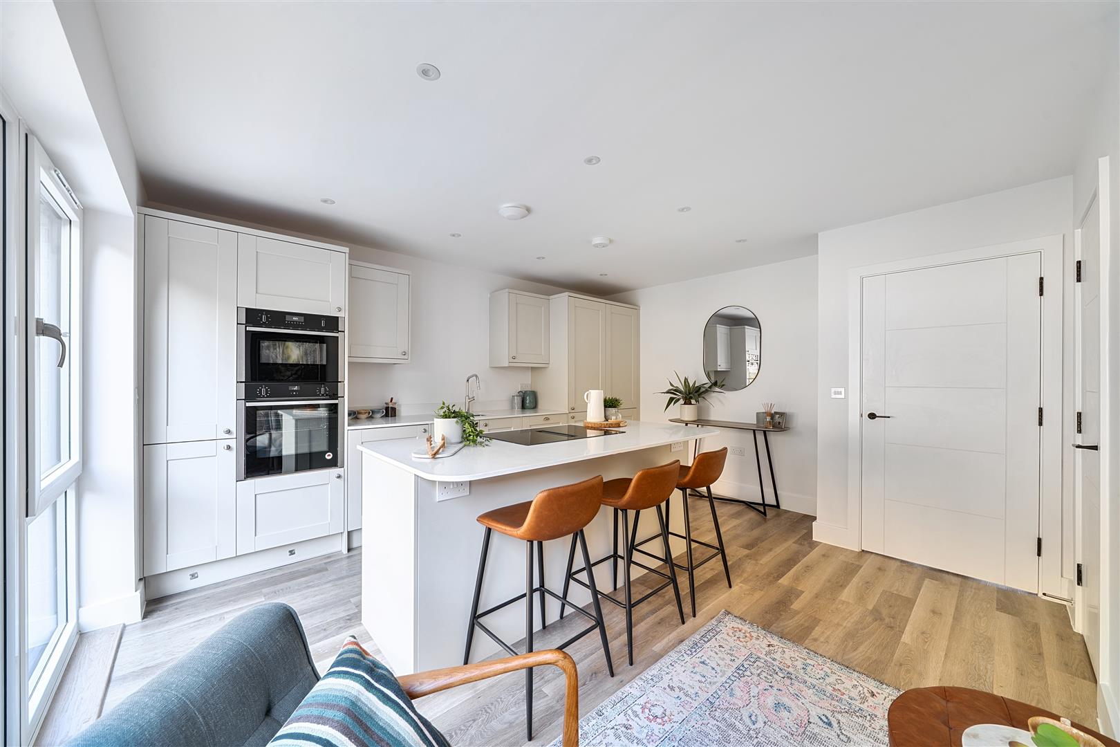 This energy-efficient home includes triple glazed windows, an air source heat pump, underfloor heating to the ground floor, Karndean flooring, and Porcelanosa tiling throughout. Outside, enjoy a westerly facing garden garage with power and lighting, and peace of mind with a 10-year build warranty.