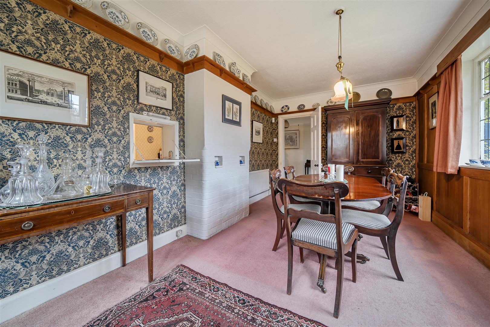 Characterful accommodation with high ceilings and picture rails; Oak panelling to 2 of the walls in the Dining Room; Wooden floor to both Sitting Room and Snug; Open fireplace with marble inset and hearth to Snug, with fitted shelves to one side; Majority of rooms being dual aspect; Spacious Landing and full height window at a half landing height overlooking paddocks; Wash hand basins to Bedroom 1 & 2; Wardrobe cupboards to Bedroom 3 & 4; Stunning gardens approaching 2 acres with Formal Gardens and Woodland; Extensive parking; Garaging with power and light; Sought after location.