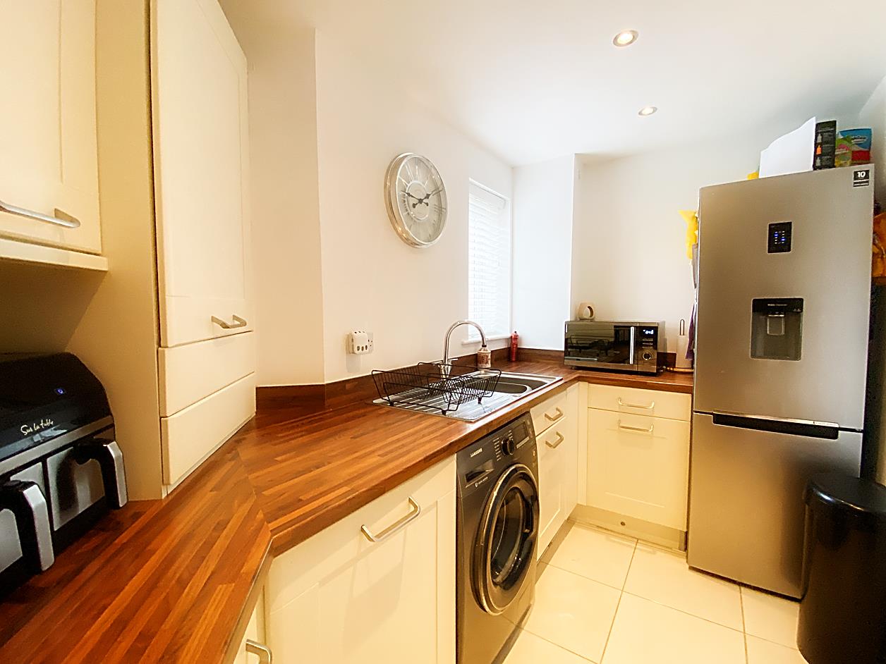 Kitchen - Fitted with a range of wall and base units with complementing work surfaces over, sink unit with mixer taps, double glazed window to the rear elevation, tiling to the floor, built in electric hob, oven and extractor hood.