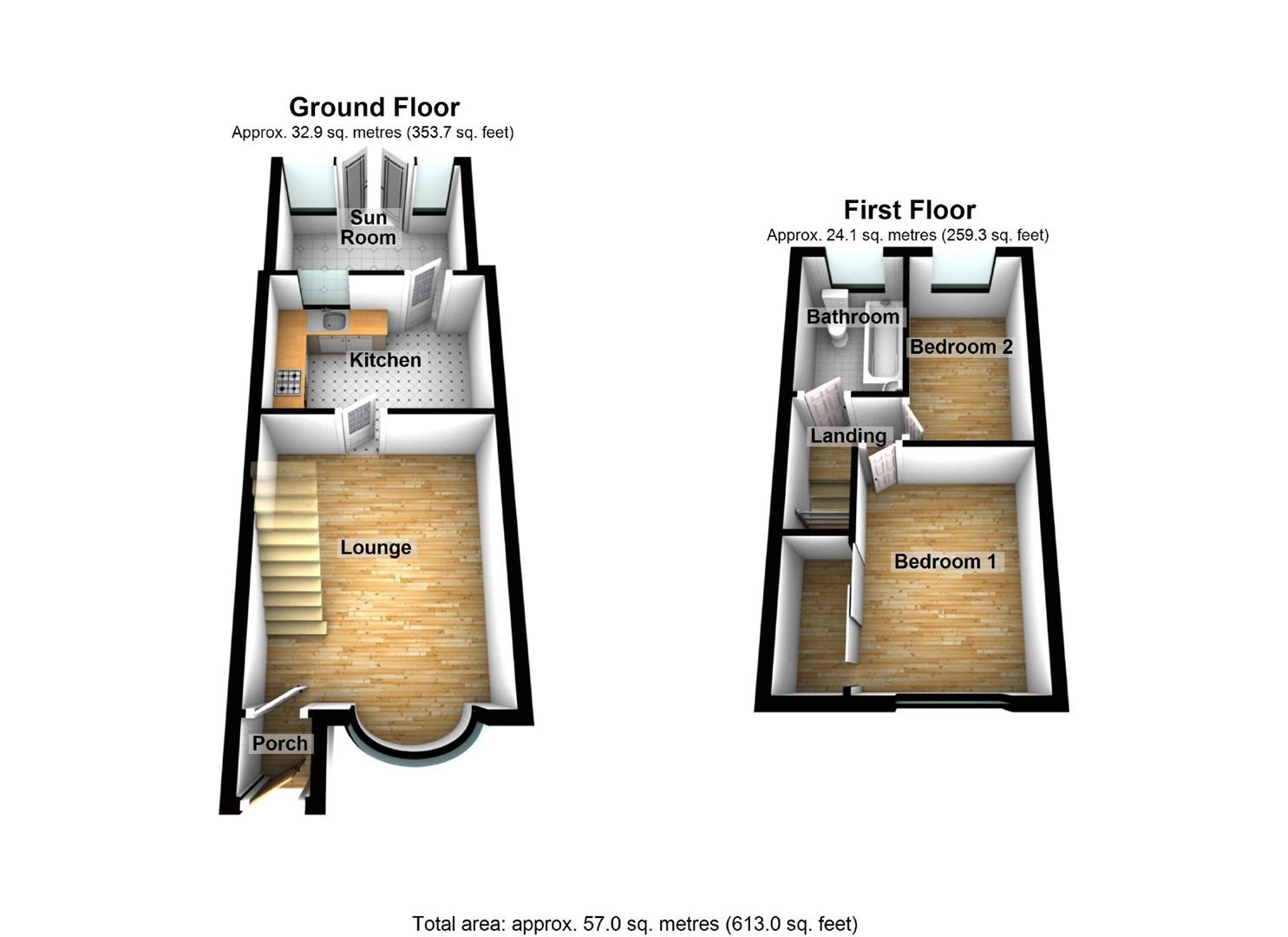 ** TWO BEDROOM MID TERRACE HOUSE ** POPULAR AREA ** DRIVEWAY PARKING ** SUN ROOM **