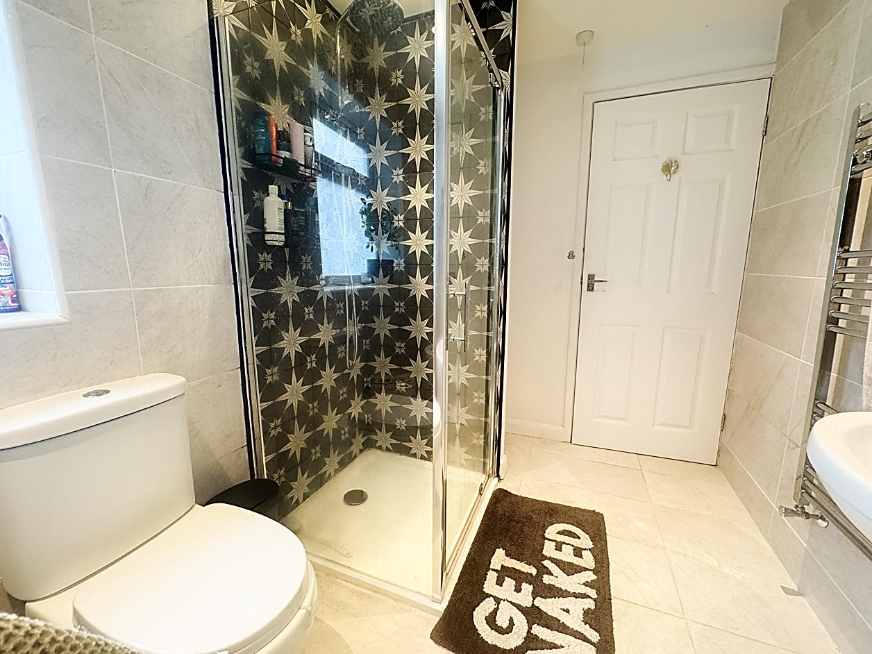 Bathroom - 3.25 x 1.89 (10'7" x 6'2") - Double glazed window, fully tiled with spotlights, WC, wash hand basin, freestanding bath, separate shower cubicle, ladder style radiator and storage cupboard which also houses boiler.