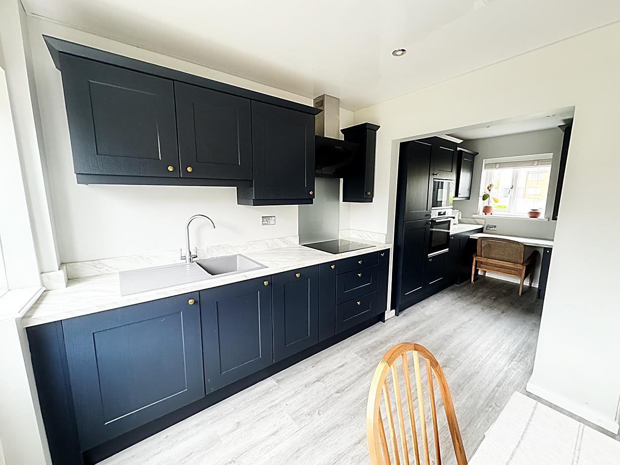 Kitchen/Diner - 4.02 x 3.00 + 2.64 x 2.10 (13'2" x 9'10" + 8'7" x - Understairs cupboard, double glazed window and door to rear garden. Fitted with a range of wall and base units with work surfaces over, sink unit, induction hob with overhead extractor hood, built in oven and microwave, integrated fridge/freezer, dishwasher, washer/dryer, radiator, laminate flooring and double glazed window to front elevation.
