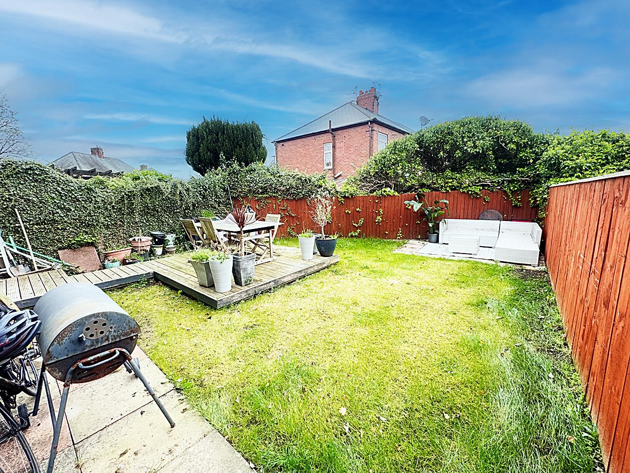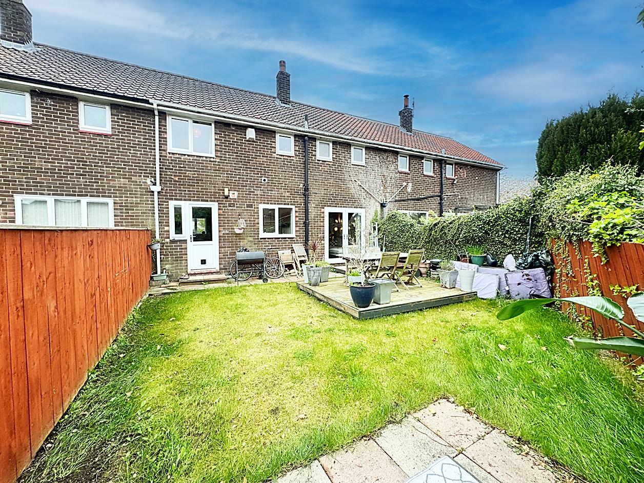 External - To the front there is a walled garden with mature hedge, gravel and paving for off street parking. To the rear there is a decked area, patio area and lawn with fenced perimeter.