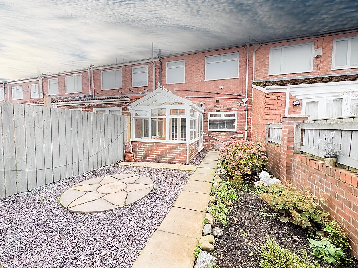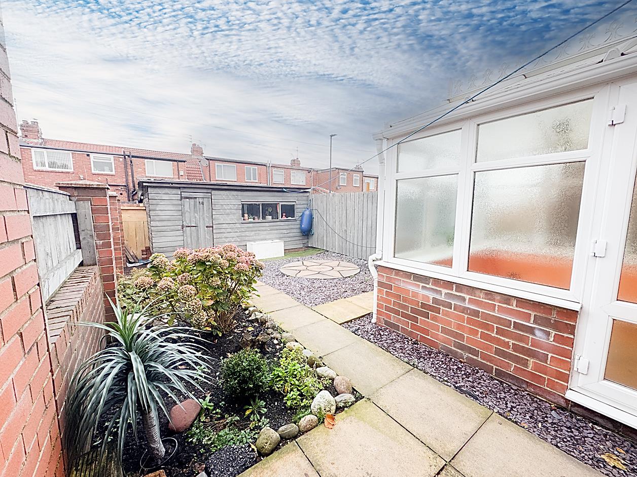 External - To the rear, there is a fenced garden with flower beds, patio area and a large storage shed (which has access to the rear lane). The front has flower beds and space for off street parking.