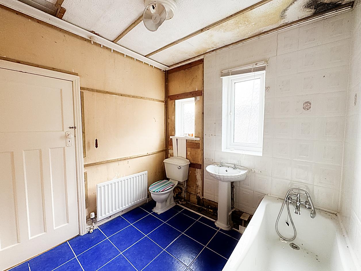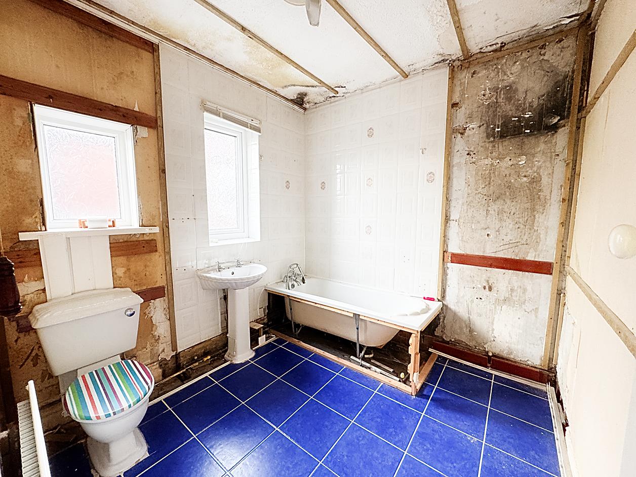 Bathroom - 2.54 x 2.45 (8'3" x 8'0" ) - Two double glazed windows, radiator, WC, hand wash basin, bath with mixer tap shower.