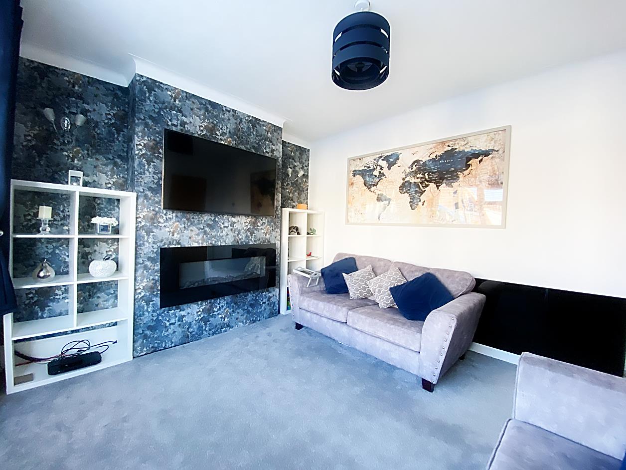 Lounge - 3.94 x 3.33 + bay (12'11" x 10'11" + bay) - Double glazed bay window, wall mounted living flame effect electric fire, radiator.