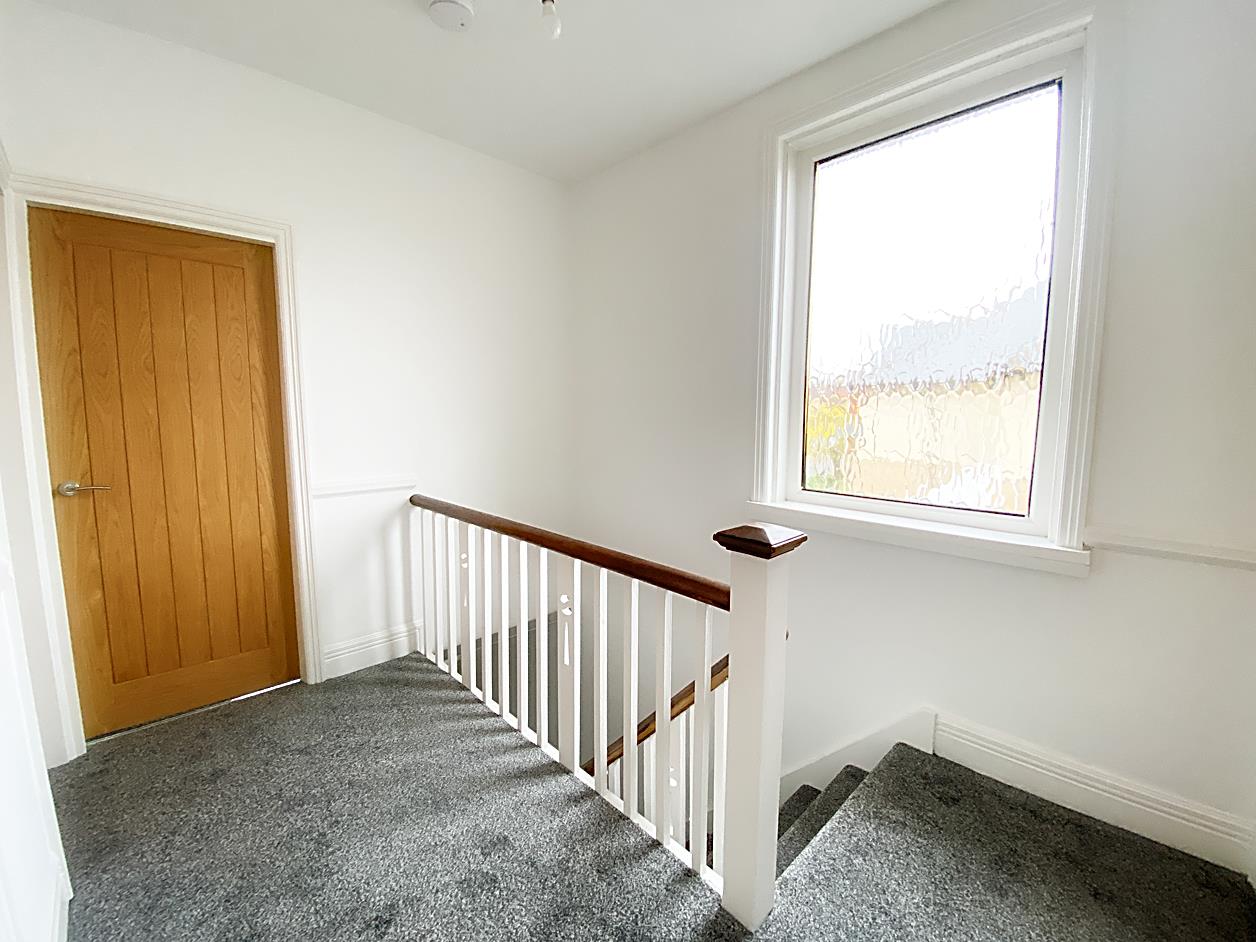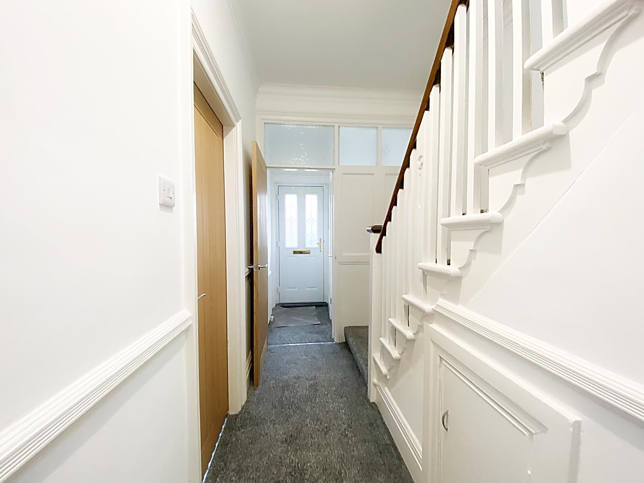 Hallway - Stairs to the first floor landing with storage cupboard under, radiator.