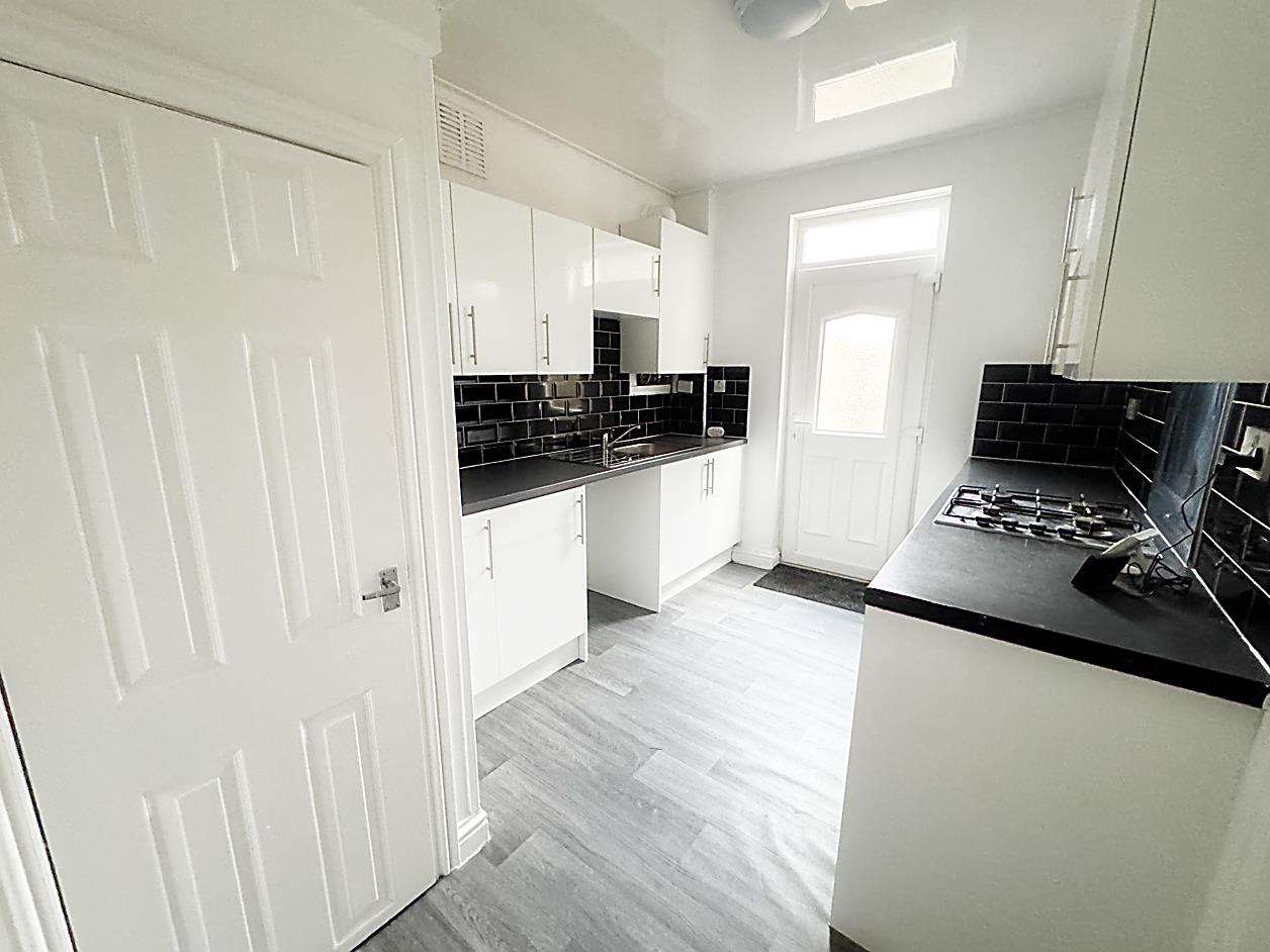 Kitchen - 3.37 x 2.51 (11'0" x 8'2") - Fitted with range of wall and base units with countertops, built in oven and gas hob, sink, UPVC door giving access to rear garden