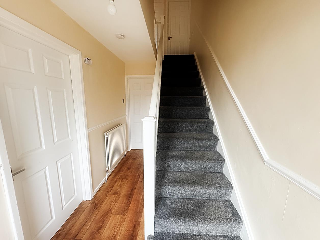 Hallway - Stairs to first floor, access to lounge and kitchen. Understairs cupboard.