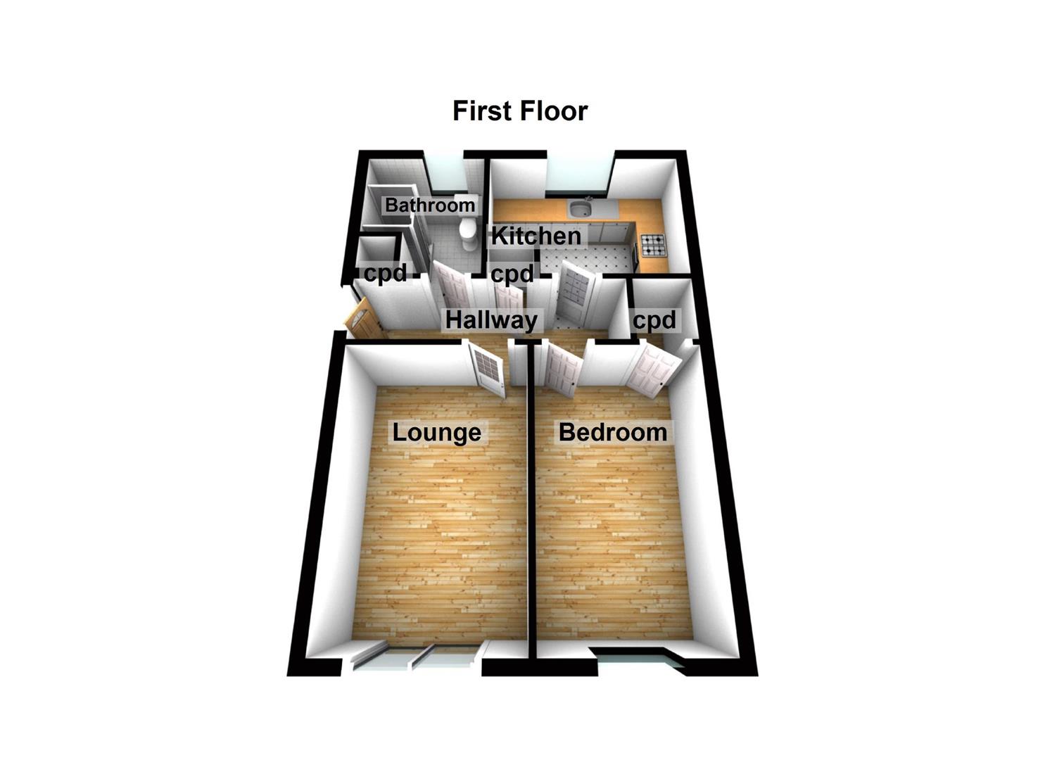 Apartment Entrance - Timber entrance door leading into the hallway. Two good size storage cupboards, wood effect laminate flooring, access into all rooms.