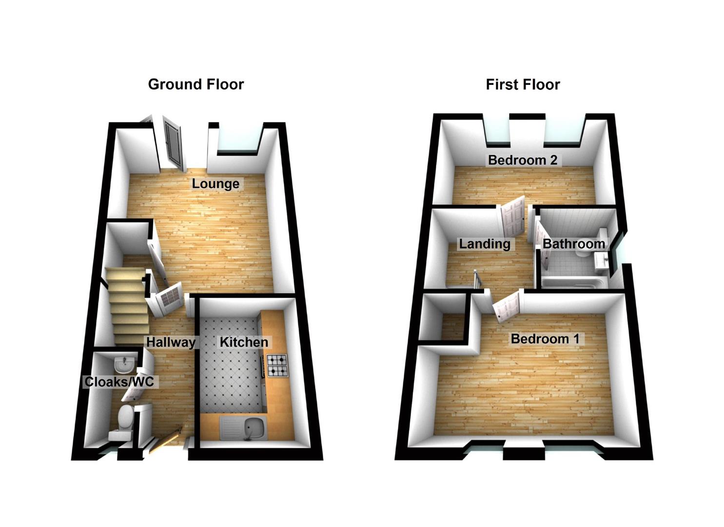 Cloakroom/Wc - Comprising: WC, wash hand basin, double glazed window to the front elevation, laminate flooring, radiator.