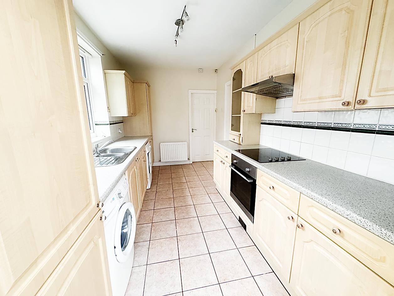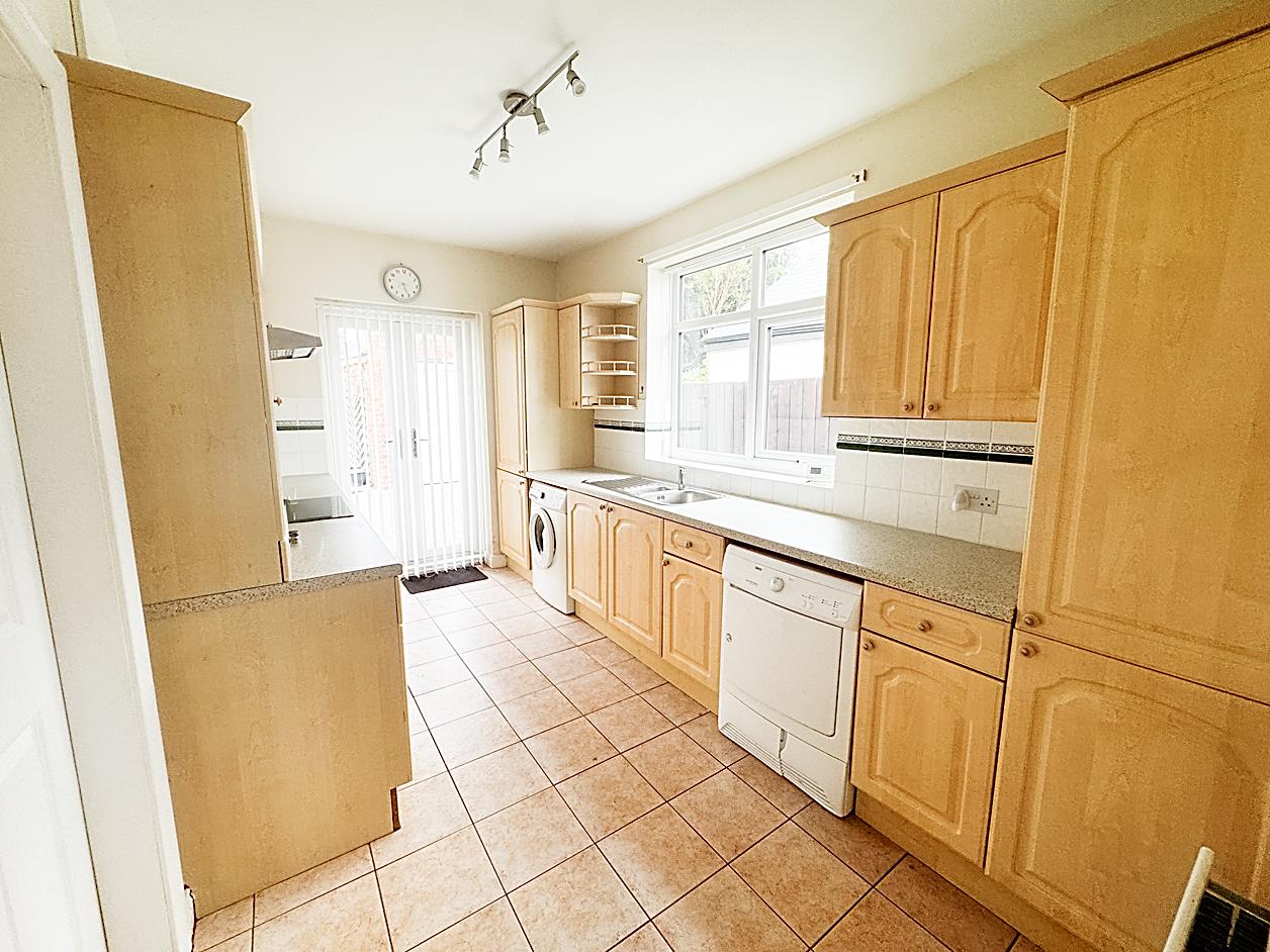 Kitchen - 4.18 x 2.38 (13'8" x 7'9") - UPVC double glazed french doors to the rear garden, radiator, part tiled walls and tiled flooring. Fitted with a range of base and wall units, counters and sink, electric hob, extractor hood and electric oven, plumbed for both washing machine and dishwasher and fitted with an integral fridge/freezer.