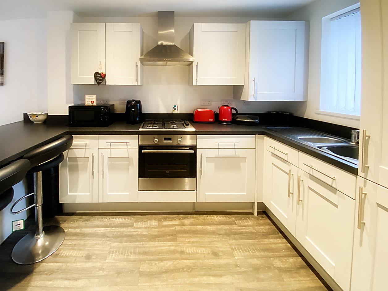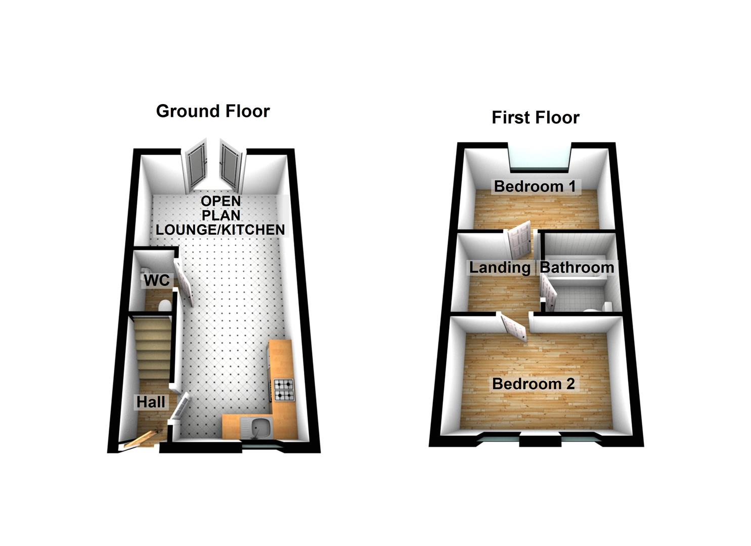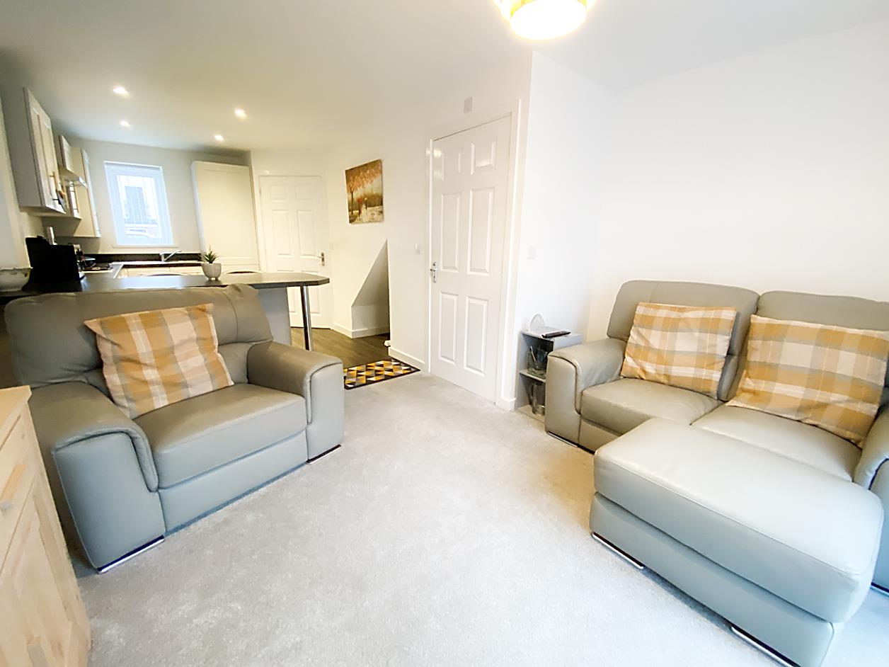 Lounge/Kitchen - 6.74 x 3.79 - Open plan kitchen/lounge, The kitchen is fitted with a range of wall and floor units with work tops over, sink unit, integrated oven and hob with extractor hood over, double glazed window, radiator and double glazed patio doors leading to rear garden.