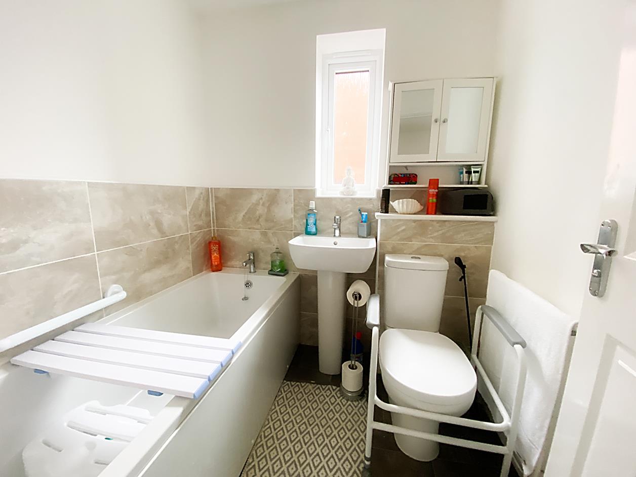 Bathroom - 1.82 x 1.66 - Comprising WC, wash hand basin and bath with shower over, radiator.