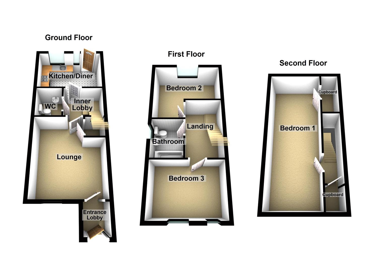 Inner Lobby - 1.94 x 1.75 (6'4" x 5'8" ) - Stairs to the first floor landing, access to kitchen/diner, laminate flooring.