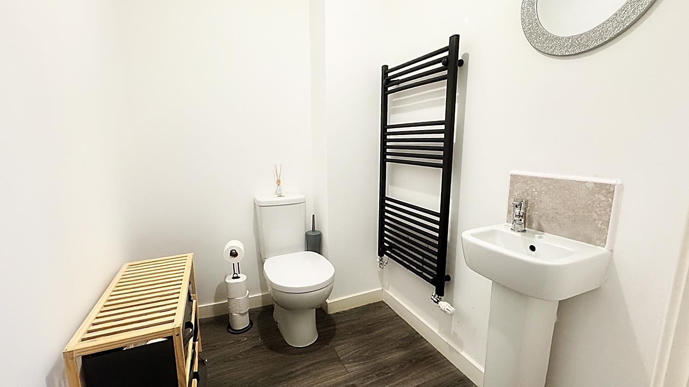 Downstairs Wc - 1.79 x 1.45 (5'10" x 4'9") - Laminate flooring, WC, wash hand basin, radiator.