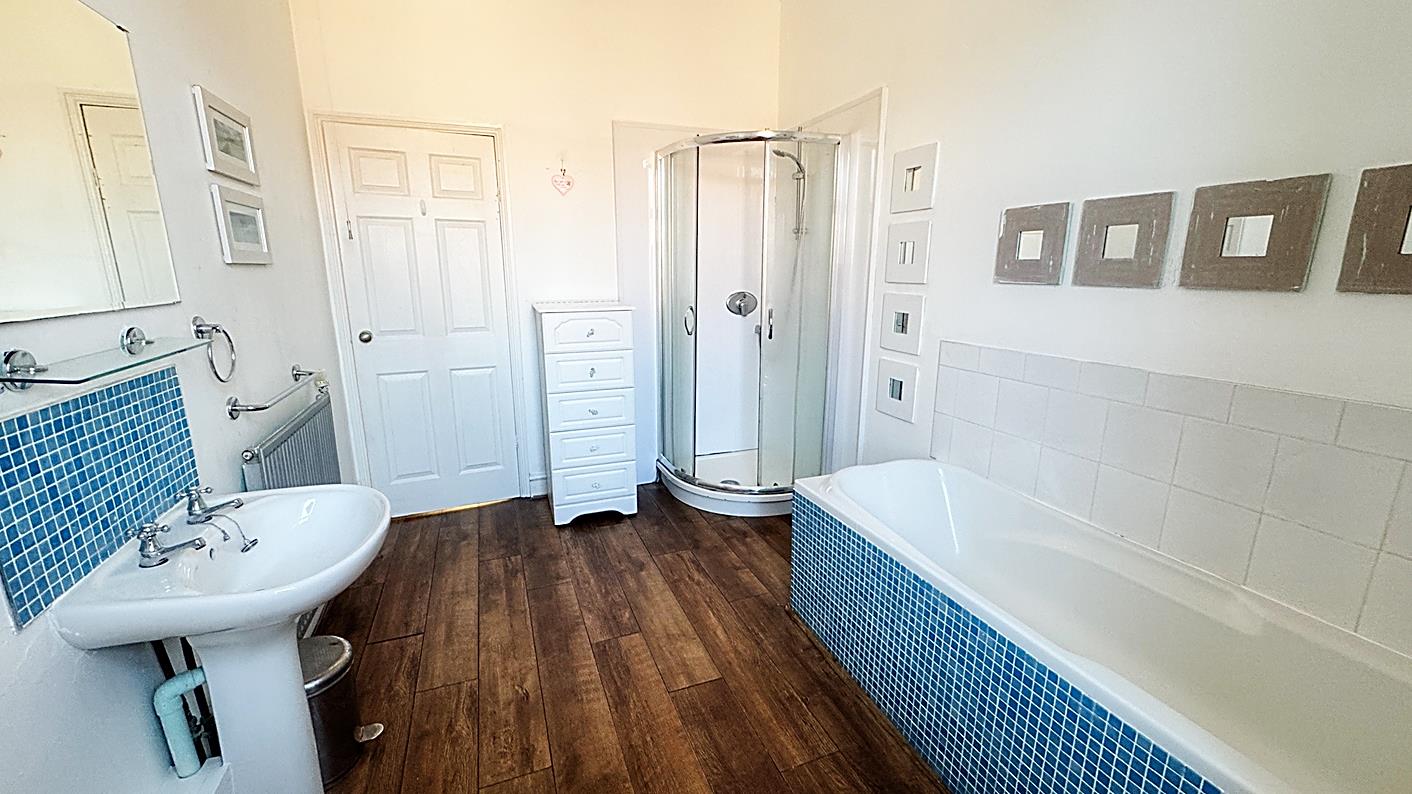 Bathroom - 3.48 x 2.47 (11'5" x 8'1") - Comprising , bath, separate shower cubicle, WC, hand wash basin, radiator and laminate flooring.