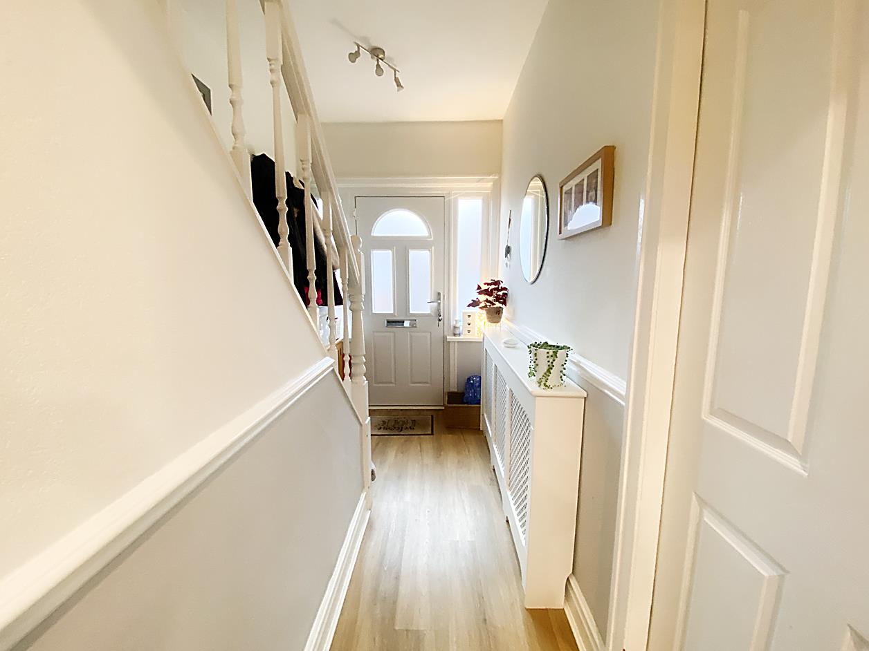 Hallway - Double glazed composite entrance door with windows to the side, stairs to the first floor landing, LVT flooring, radiator.