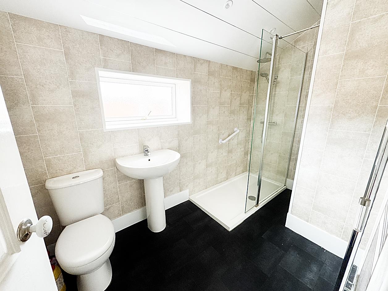 Shower Room - 2.66 x 1.72 max (8'8" x 5'7" max) - Double glazed window, ladder style radiator, WC, wash hand basin and walk in shower. Plastic cladded walls.