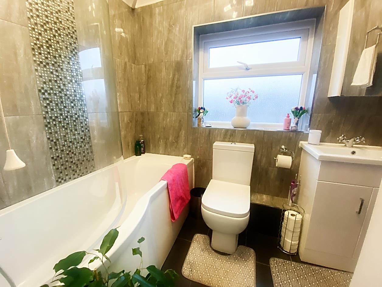 Bathroom - 2.28 x 1.58 (7'5" x 5'2") - Comprising; bath with shower over, WC and wash hand basin. Double glazed window, tiling to walls, ladder style radiator.