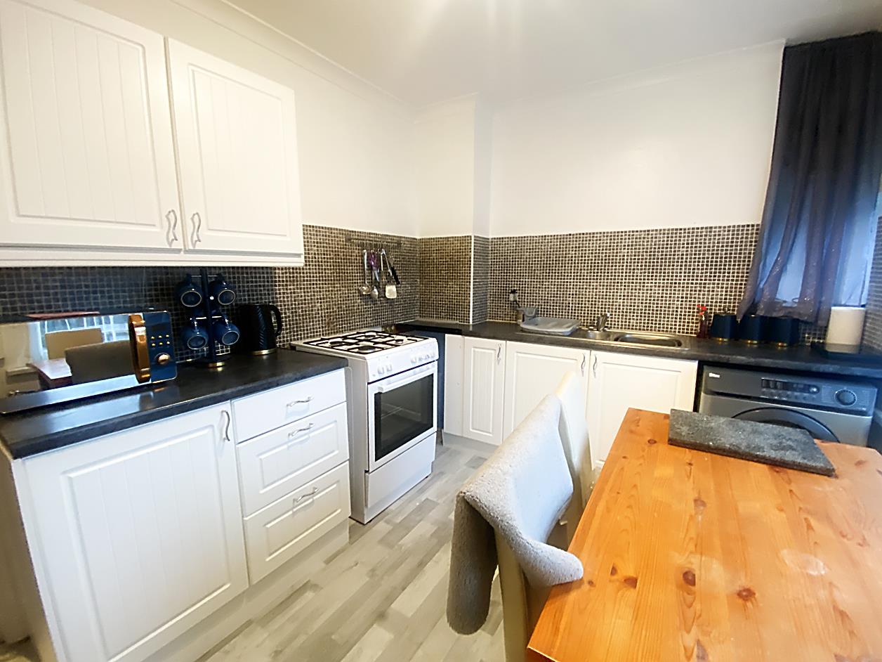 Kitchen - 3.61 x 2.64 (11'10" x 8'7") - Fitted with wall and base units with work surfaces over and sink unit, gas cooker, washing machine and fridge/freezer.