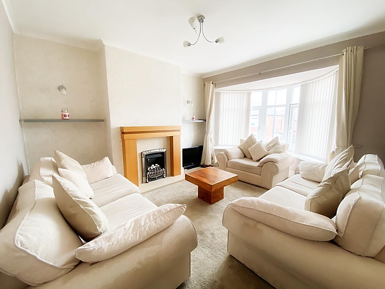 Lounge - 3.65 x 3.58 + bay (11'11" x 11'8" + bay) - Double glazed bay window, fireplace, radiator and sofas.