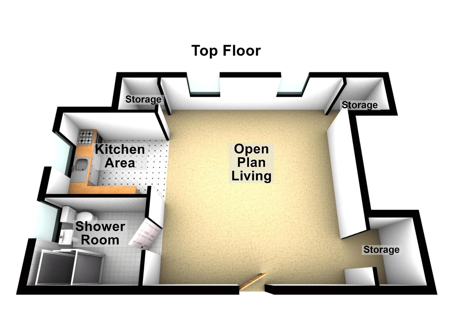 Studio Apartment - 5.91 x 5.45 (19'4" x 17'10" ) - Open plan living, electric heater, laminate flooring two double glazed windows and two velux style windows. Storage space in eves.