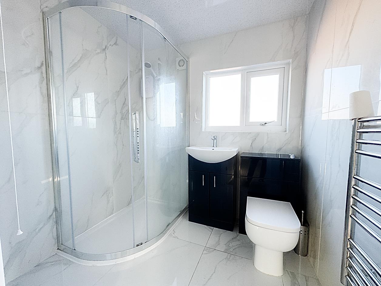 Shower Room - 2.02 x 1.77 (6'7" x 5'9") - Double glazed window, fully tiled, ladder style radiator, shower cubicle, WC and hand wash basin set in vanity unit.
